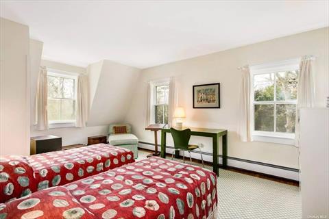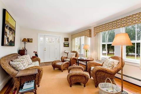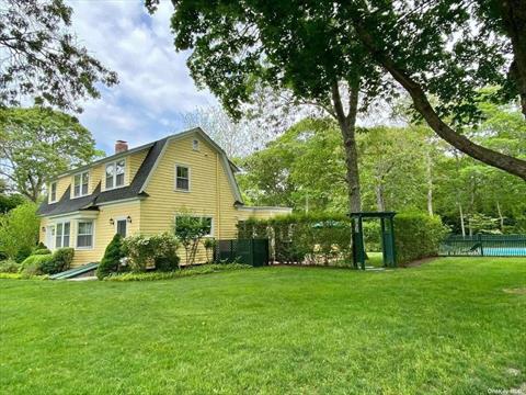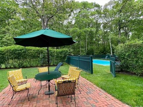 Idyllic Quogue South Rental -This bright, fully-renovated farmhouse in the heart of Quogue sits adjacent to 14 acres of private woodlands. The main floor features a newly-renovated first-floor primary suite, living room with wood-burning fireplace, cozy sunroom/study, and kitchen with a sunny dining area. Upstairs are three more bedrooms and an updated bath with walk-in shower. On summer evenings sit outside and enjoy the shady patio dining area, heated pool, and surrounding woods and gardens. Less than 1 mile from the Quogue Bridge/Dune Road, only 1.7 miles from the Quogue Village Beach, and barely 3 blocks from shops and Hampton Jitney. Available July ($45k) and August ($45k) 2026.