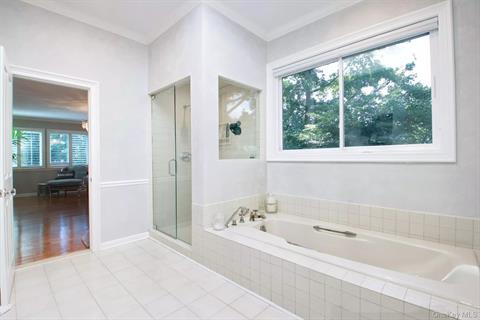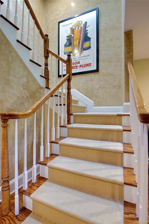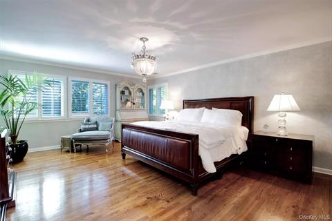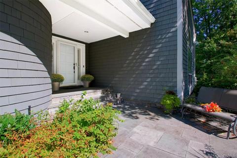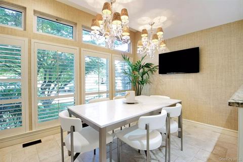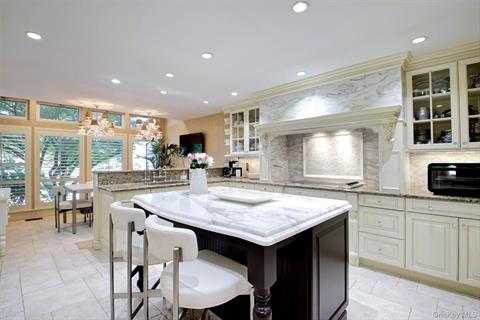 Welcome to this Elegant Ralph Lauren inspired end-unit residence in the coveted Spruce Pond community of North Hills. With a long private driveway, timeless design, and exceptional details, this home offers both sophistication and comfort. Enter through the spacious center hall entry, which flows into a stunning living room with soaring ceilings, gleaming hardwood floors, a gas fireplace, and expansive windows that bathe the space in natural light. The formal dining room is perfectly positioned off the chef’s eat-in kitchen, featuring a spacious breakfast area, custom wood cabinetry, porcelain countertops, a center island, and exquisite tile work. The warm and inviting family room, with its custom wood built-ins, gas fireplace, and dry bar, is ideal for entertaining. A stylish powder room completes the first floor. The second floor offers a generous landing, an oversized primary suite with his-and-hers closets and a luxurious bath, plus two additional bedrooms and a full bathroom.The finished basement adds even more living space with multiple rooms to suit your lifestyle needs. Additional highlights include: Two-car garage, Gas heat , Private deck off the living room. This beautiful home has a southern exposure.