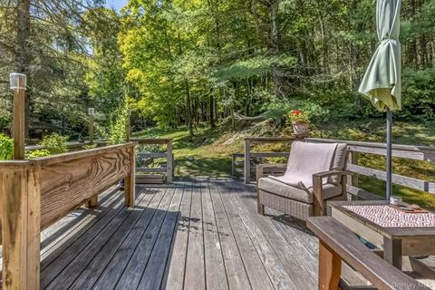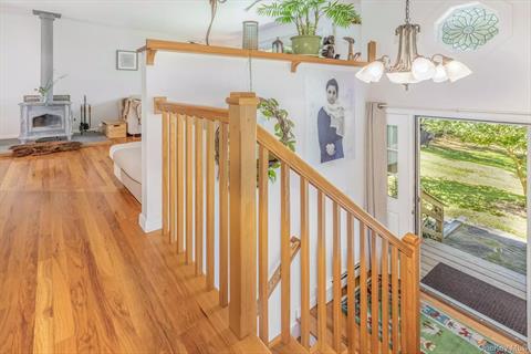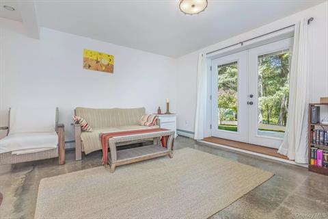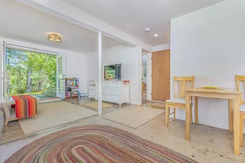 Perfectly sited and set back from one of Rhinebeck’s prettiest roads, this lovingly renovated two-story home offers the best of country living with tasteful modern updates. Nestled on 8.8 acres of serene landscape, the property is a nature lover’s paradise—featuring sloping rear grounds, dramatic rock outcroppings, native plantings, and an enclosed vegetable garden, all framed by mature forest. Inside, the home is filled with natural light and boasts a user-friendly layout. The open-concept living, dining, and kitchen area is anchored by a stylish and efficient wood stove, perfect for cozy gatherings. Down the hall are three bedrooms—one currently used as a music room—and a full bath. French doors off the kitchen open to a 12’ x 14’ deck, creating a seamless indoor-outdoor connection. Just beyond the deck, enjoy a wood-fired sauna and, deeper into the land, an architect-designed 16’ x 20’ gazebo that wouldn’t be out of place in Central Park—ideal for entertaining or quiet contemplation. The lower level is dry and beautifully finished, with polished concrete floors and two well-sized rooms separated by a full bath and laundry area. One room includes an electric cooktop and French doors leading to a bluestone patio—perfect for use as a guest suite or studio. Recent upgrades include: Boiler (2024) Roof (2020) Gutters (2021) Spray foam insulation and drainage improvements (2011, lower level renovation) With meticulous attention to detail throughout, both the home and grounds reflect a deep care and pride of ownership. A truly special property offering privacy, character, and comfort—just minutes from the heart of Rhinebeck.