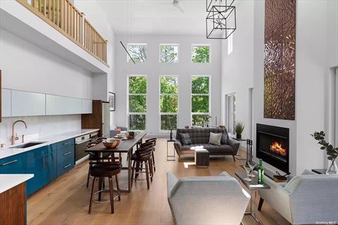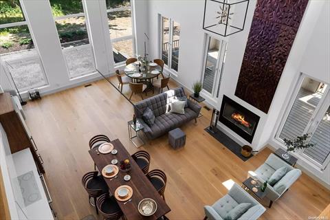 This custom-built, modern home in Jamesport is close to Riverhead’s wineries, the Great Peconic Marina, and beaches. Ideal for year-round living or vacationing, it features five bedrooms, three full baths, two half baths, and four spacious decks.Inside, enjoy a dramatic double-height living room with 20-foot ceilings, a wood-burning fireplace as well as a gas-burning fireplace, and large European tilt-and-turn windows. The custom kitchen has quartz countertops and modern appliances, while the family room offers a gas fireplace and wet bar. The house also features 10 wide oak plank floors throughout, and an elegant open oak staircase leading to a gallery.The home includes a full basement with nine-foot ceilings, a two-car garage with EV chargers, and two driveways.Additional highlights: Four-zone central AC, ceiling fans in every room, two washers/dryers, a camera security system, and energy-efficient insulation. The 0.69-acrefully landscaped lot has an automated irrigation system and room for a pool.*Special Features: Newly constructed, modern design, turnkey, open views, double-height living room, hardwood floors throughout, full basement with a 2-car garage, garage and driveway equipped with electric vehicle chargers, oversized tilt-and-turn European windows, four large decks, wood-burning fireplace, gas-burning fireplace, 4-zone central AC. Amenities: Primary bedroom on the first floor, family room/den, 9 custom-built closets, two fireplaces (wood-burning and gas-burning), security system, two sets of full-size washers and dryers, moments away from the town beach, community tennis, pickleball, and local amenities.