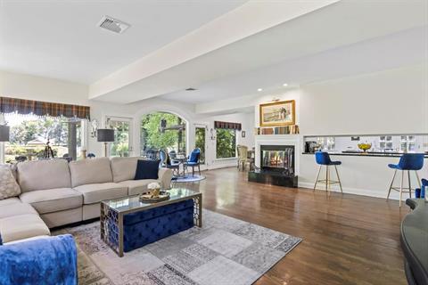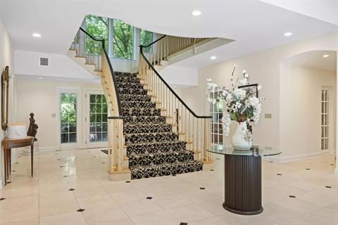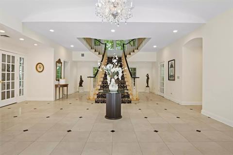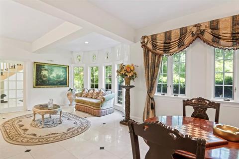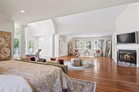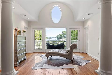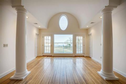 Centre Island. Step into timeless elegance at this distinguished 3-acre English Country-inspired property, ideally situated amongst storied Gold Coast estates. This stately residence blends classic stucco architectural detail with modern luxury, offering privacy and year-round water views. A grand entry foyer welcomes you with a sweeping bridal staircase and soaring ceilings, bathed in natural light from expansive windows. French doors lead into a magnificent, ballroom-style living room—ideal for hosting formal gatherings. The main level also features an exquisitely detailed formal dining room with custom details, a large sized den with a fireplace that invites relaxation, and a granite chef’s kitchen with premium appliances and panoramic views of the harbor. Perfect for both entertaining and day-to-day living, every space flows seamlessly while offering character and architectural distinction. Upstairs, the primary suite is its own private retreat, showcasing dramatic double-height ceilings, fireplace, its own staircase, elegant architectural columns, and three spacious walk-in closets. The en-suite bath is spa-inspired, with luxurious finishes, a soaking tub, and separate vanities. Step out onto your private balcony to take in sweeping, uninterrupted water views. Four additional well-appointed bedrooms and three full bathrooms complete the second level, offering ample space for family and guests. The grounds are a true highlight, with circular gravel driveway approach, lush, manicured lawns, mature specimen plantings, and multiple outdoor entertaining areas. A detached three-car garage with attic space completes the property. A true haven for those seeking luxurious North Shore living with historic charm and coastal beauty. Located one block from Seawanhaka Yacht Club and close to distance to Centre Island Beach. Oyster Bay SD.
