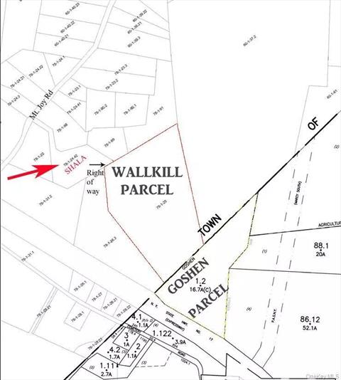 The lot is located in a desirable area close to the Galleria Mall and Crystal Run Health Care. The only way to access the property is via a Wallkill 27.90 acre lot with a right of way located off of Mt Joy Rd. There are no marked boundaries or any roads leading to the property. Additional Information: Soil Type: Unknown.