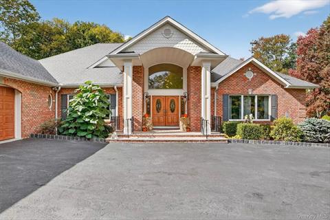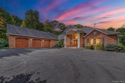 A long driveway leads to this custom-built sprawling ranch set on a secluded 16-acre parcel with unmatched privacy. As you approach this solid brick front home your eyes are drawn to the huge portico entrance. Step inside to an inviting two-story entryway w/parquet wood flooring, open to living room w/tray ceiling and leading to spectacular oversized kitchen with all the bells and whistles. Stunning cherry kitchen cabinets, granite countertops, Viking island cooktop, side by side Sub Zero refrigerator & freezer, Thermador double convection oven and 2 draw wine cooler. The kitchen opens to a great room w/high ceilings, built-in entertainment cabinetry and a propane gas fireplace. Sliding glass door exits out back to huge composite deck w/overhead vine covered trellis. The primary bedroom suite features luxurious bathroom with whirlpool tub, double sink vanity, his & her walk-in closets. Three additional oversized bedrooms, one converted to office w/custom build in cabinets. The walk-out lower level opens to endless possibilities: a recreation room game room, dance studio, gym, or simply space for storage. Brand new HVAC System 2024. Poured concrete walls with 9 ft ceilings, a wine cellar, multiple oversized windows, central vacuum and dual 275 gal above ground oil tanks. Original builder/owner planned a separate entry to basement for a legal accessory apartment with its own private entrance. Don’t miss this rare opportunity to own a distinguished residence in one of Westchester’s premier areas.