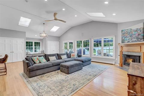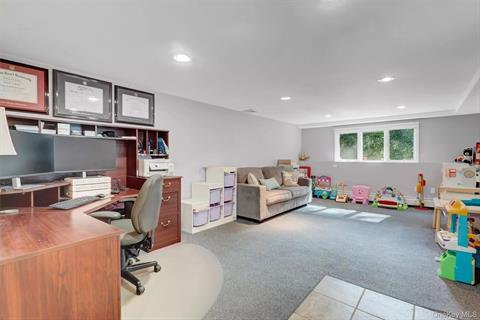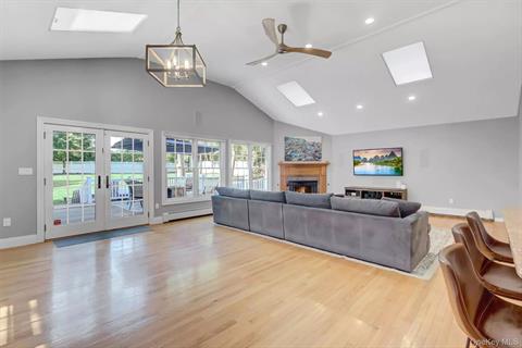 Picture-perfect and impeccably maintained, this 3-bedroom, 2.5-bath Ranch sits on a beautifully landscaped and fully fenced flat .75-acre property. Enjoy a serene setting with a new patio and an expansive entertaining deck, ideal for everyday relaxation or hosting gatherings.Inside, a bright and welcoming great room with wood-burning fireplace/insert opens seamlessly to the dining room, family room, and updated eat-in kitchen. The kitchen features maple cabinetry, granite countertops, center island, and stainless-steel appliances, all connected through an airy open floor plan perfect for modern living.The private primary suite offers a walk-in closet and full bath. Two additional bedrooms share a well-appointed hall bath. The finished lower level provides exceptional bonus living space, including a recreation/play area, office, and a convenient powder room. The former garage has been thoughtfully converted into an impressive home gym.Located in a prime, convenient setting—just minutes to the Cold Spring Harbor LIRR, shopping, the Walt Whitman Mall, Huntington Village, theaters, fine dining, parks, major parkways, and all the amenities of the sought-after West Hills community.
