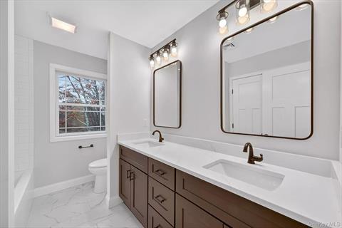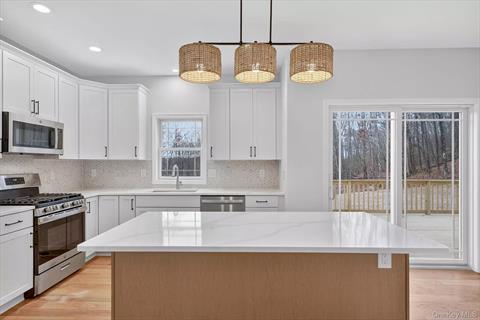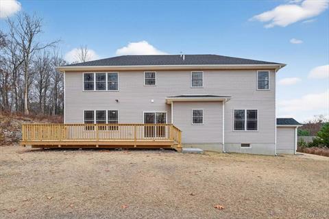 Move in Ready! Final touches now completed on this exceptional Modern Farmhouse nestled on 2.8 private acres with seasonal mountain views in the beautiful town of LaGrange. Designed with modern living in mind, the home features a welcoming wrap-around front porch, an open and airy layout, and 5 wide hardwood floors throughout the main and second levels. Oversized windows fill the home with natural light, highlighting the spacious living areas. The heart of the home is the stylish kitchen, designed with sleek white and wood tone cabinetry, quartz countertops, tiled backsplash for accent, stainless steel appliances and a center island perfect for a busy household and entertaining. The first floor includes an open living room-dining room—ideal for large gatherings, a casual breakfast area off the kitchen, and a large family room with a gas fireplace and access to a back deck—perfect for indoor-outdoor living. A tiled mudroom with access to garage, large powder room with tiled flooring, and ample closet space complete the main level. Upstairs, the thoughtfully designed layout includes four generous bedrooms, including a spacious primary suite with two walk-in closets and a luxurious en suite bath with an elegant dual vanity with quartz top and an oversized tiled shower. A second full bath with contemporary finishes serves the additional bedrooms, also with dual vanity with quartz top and tiled bathtub/shower. The laundry is conveniently located on the second floor has tiled flooring also. This home also includes energy-efficient systems, a full basement with future finishing potential featuring a walkout door, and an oversized two-car garage. Walk down your driveway to Red Wing trail with entrance located on cul-de-sac. Located in the sought-after community of Meadow Ridge in LaGrangeville, you’ll enjoy nearby amenities such as James Baird State Park, local farm markets, golf courses, hiking trails, and easy access to the Taconic State Parkway and Route 55. Don’t miss the opportunity to own a brand new dream home in Dutchess County! NOTE: Some images included in the listing have been virtually staged to help showcase the intended use and true potential of spaces in the home.