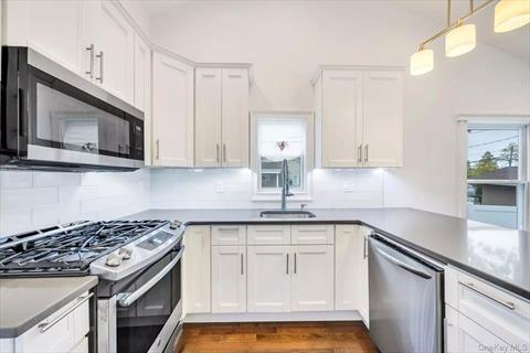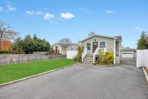 Welcome to 21 Ireland Place, a beautifully updated Ranch offering modern comfort and low-maintenance living in the heart of Copiague. This charming home features 2 spacious bedrooms and 1 full bath, highlighted by gleaming hardwood floors, recessed lighting, and vaulted ceilings that create an open and airy feel throughout. The updated kitchen is equipped with white cabinetry, stainless steel appliances, gas cooking, and ample counter space — perfect for everyday meals and entertaining.Enjoy year-round comfort with central air conditioning, plus the convenience of an unfinished basement offering endless possibilities for storage, recreation, or future expansion. A 1-car detached garage provides additional storage and parking options. Situated close to shopping, parks, transportation, and local amenities, this move-in-ready home is a fantastic opportunity. Don’t miss it!
