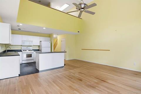 Welcome to Silver Ponds, the highly sought-after gated community at the gateway to the Hamptons! This Ashton II model is clean and waiting for you! This home offers 2 very spacious bedrooms and 2 full baths, including a main-floor bedroom with a full bath featuring a walk-in shower, providing comfort and flexibility multigenerational living. Inside, you’ll find sun drenched living and dining areas with skylights and a sliding glass door that opens to private wooded views, creating a peaceful and inviting atmosphere. Step outside to an outdoor paver patio—perfect for unwinding and relaxing. The spacious extent kitchen is well-equipped with oak cabinetry, a gas stove, refrigerator, tile flooring, and a pantry. Hardwood floors in main—ideal for everyday living or entertaining. Upstairs, a versatile loft area with hardwood floor offers great flex space that can serve as a home office, TV room, or optional third bedroom. The primary bedroom is generous in size and features three closets along with a private en suite bath with a soaking tub. Additional features include a roof under 10 years old, 2 year old HVAC system and water heater, washer and dryer, ceiling fans, gas heat, a and a one-car garage. This home sits in a prime location within the community, just a short distance from all of Silver Ponds’ resort-style amenities: three outdoor pools, tennis and pickleball courts, bocce, basketball, a scenic gazebo, clubhouse with billiards, fitness center, and beautiful ponds with water features that add to the tranquil setting. With easy access to both the Long Island Expressway and Sunrise Highway, this is the perfect opportunity to enjoy low-maintenance living in a serene, active setting. Live where every day feels like a vacation!