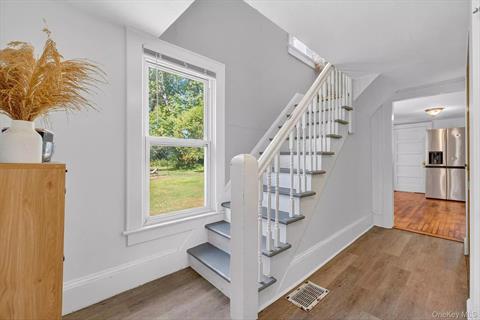 Welcome to this classic, petite Colonial set on a level .79-acre lot in the heart of scenic Poughquag. This home combines timeless character with fresh updates, offering plenty of space both inside and out. Step onto the inviting front porch or enjoy gatherings on the large back deck overlooking a semi-private, tree-lined backyard with firepit—perfect for entertaining, gardening, or simply relaxing outdoors. Inside, the home features a light-filled living room and dining area with freshly painted walls and hardwood floors. The updated kitchen includes crisp white cabinetry, granite-look counters, and brick accents that add warmth and charm. There is also a mudroom/sunroom off the side of the kitchen which has an entry from the deck. Upstairs, you’ll find three comfortable bedrooms and two full, updated baths, providing ample room for family or guests. There is also a walk up attic that is unfinished, perfect for hobbies, storage or other purpose. The layout offers both functionality and comfort, making it easy to envision this as your country home. Situated in a peaceful setting while still close to conveniences, this property offers easy access to major routes, shopping, schools, and recreation. Just minutes from the Taconic State Parkway, commuting is a breeze. Nearby, you’ll find local farms, hiking trails, and the quaint hamlet of Poughquag with small-town charm and community spirit. This is a wonderful opportunity to own a home that blends classic style, modern touches, and a beautiful Hudson Valley location.