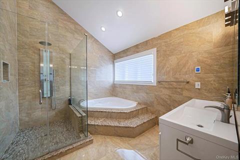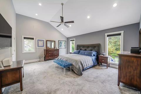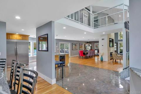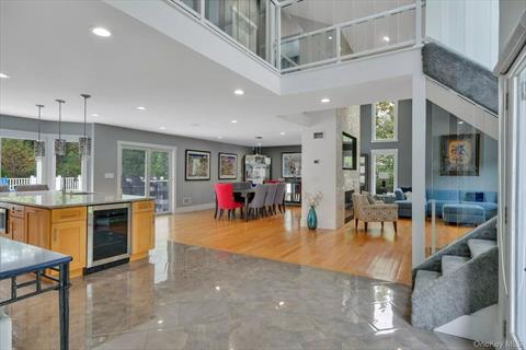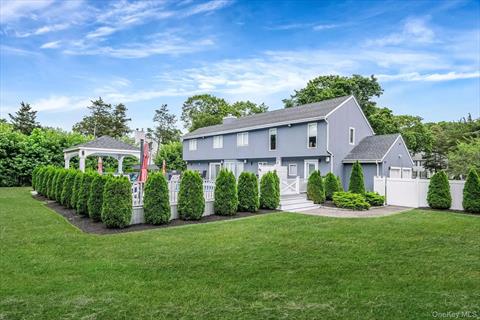 Welcome to 14 Deer Meadow Run, a stunning, fully renovated (2017) contemporary 4-bedroom, 4-bath retreat offering over 4, 000 sq. ft. of living space on a private, tree-lined cul-de-sac in Brookhaven Hamlet. Upon entering, you are greeted by soaring ceilings, abundant natural light and a seamless open-concept flow. The main level features a chef’s kitchen, which opens to the formal dining room with a double-sided glass fireplace between the living room and dining room, plus a custom bar/lounge ideal for entertaining. Upstairs offers four spacious bedrooms including a luxurious primary suite with custom walk-in closet and spa-style bath. The lower level provides additional space for flexible lifestyle use. Outside, enjoy your own private oasis with a saltwater pool, LED-lit pergola lounge, outdoor bar, two gas fire pits, outdoor shower and expansive decking surrounded by mature arborvitaes for total privacy. Just 15 minutes to the beach, 25 minutes to Southampton, and close to top restaurants, boutiques, nightlife, wineries, golf, marinas, NYC-based hospitals along with easy access to major highways. Perfect for those who love to entertain, this home is truly a standout in the neighborhood. Experience a Hamptons feel without the Hamptons price!