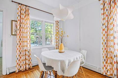 Lovingly maintained and ready for its next chapter, this hard-to-find semi-detached two-family brick home enjoys windows on three sides for abundant natural light and cross-ventilation. Original architectural details showcase the home’s character, including coved ceilings, a slate roof, and arched openings; a skylight and transom on the upper floor further flood the interior with light. Hardwood flooring, several ceiling fans, and freshly painted interiors enhance the appeal. The top-floor residence is a spacious five-room, two-bedroom layout with a beautifully renovated bath and a kitchen featuring quartz countertops, stainless-steel appliances, and a handy pot filler; the original arched opening connects the kitchen to the dining area seamlessly. The walk-in level offers a one-bedroom with an extra-large living room, windows in every room (including a windowed bath), and an eat-in kitchen that opens directly to the rear yard for easy indoor-outdoor flow. Potentially unused square footage on the lot with expansion possible, but must be confirmed independently with your architect. Outdoor space spans both the front and back of the property, with a well-manicured yard ideal for seating and gardening, and private rear parking that can accommodate multiple vehicles; an updated tankless hot-water system and two-zone heating add modern efficiency. Conveniently located in East Elmhurst, the home offers easy access to LaGuardia Airport, the Grand Central Parkway, the RFK/Triborough Bridge, and the 7 train, while the Q33 bus is just steps away.