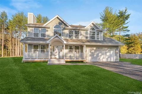Experience the perfect blend of privacy, craftsmanship, and modern living in this stunning brand-new construction, ideally positioned near the end of a quiet dead-end street in Medford, NY. Set on approximately 1.38 acres with a long private driveway, this 2, 488 sq ft colonial offers both serenity and sophistication from the moment you arrive. A covered front porch and side-entry two-car garage create a welcoming exterior, complemented by an eco-friendly septic system and meticulous planning for comfort and efficiency. Step inside to discover an open-concept floor plan featuring rich hardwood floors, recessed lighting throughout, and a beautiful wood-burning fireplace with a granite hearth and custom surround anchoring the living space. The designer kitchen is the heart of the home, complete with granite countertops, a subway tile backsplash, a custom range hood, and sleek stainless-steel appliances—perfect for both entertaining and everyday living. A full first-floor bath is conveniently located near the rear entry, with direct access to the backyard—ideal for a future pool or outdoor entertaining area. Upstairs, four spacious bedrooms and two full baths include a luxurious primary suite with a walk-in closet, a spa-style bath featuring a freestanding soaking tub, and a separate glass-enclosed shower. The hall bath offers a six-foot soaking tub for added comfort. A dedicated second-floor laundry area adds everyday convenience, keeping chores close to the bedrooms. Elegant oak stairs and handrails highlight the home’s craftsmanship and attention to detail. The home also includes a full basement with two egress windows, an outside entrance, and a spray-foamed roof for a climate-controlled attic—adding energy efficiency and flexibility for future expansion.
