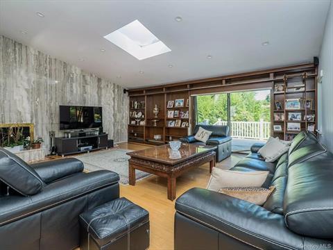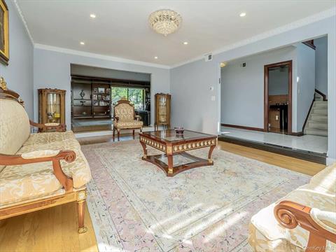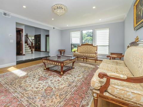Welcome to this exquisite Center Hall Colonial located in the prestigious Village of Kings Point. Set on a beautifully landscaped flat property, this elegant home offers approximately 4, 144 square feet of refined living space, perfect for both grand-scale entertaining and everyday comfort. The main level features a dramatic entry foyer that opens to a spacious formal living room and dining room, a sunlit family room with a wood-burning fireplace, and a large modern eat-in kitchen with center island, granite countertops, and breakfast area with sliding doors leading to an oversized deck and expansive backyard. A private guest bedroom or office with full bath, powder room, spacious mudroom, and a dedicated laundry room complete the main floor. Upstairs, the luxurious primary suite offers a vaulted ceiling, spa-like marble bathroom, and walk-in closet. Three additional well-appointed bedrooms and one full bath provide comfort and privacy. The spacious finished basement includes a large playroom utility room, storage, with walk-out access to the yard. Outdoors, enjoy a private country club lifestyle with a sparkling in-ground swimming pool, oversized new deck, and plenty of space for entertaining. Additional features include an attached two-car garage, hardwood floors on main level, central air conditioning, and a two-zone gas heating and cooling system. Ideally located close to town, shops, restaurants, railroad, and fabulous park district, this is a rare opportunity to own a timeless and elegant home in one of Long Island’s most exclusive communities.