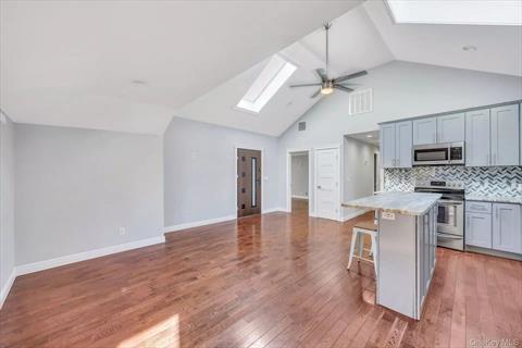 Welcome to this Updated Expanded Ranch with Separate Finished Space in the Village of Lindenhurst!Step onto a beautifully designed full paver driveway that leads to a charming front porch, setting the tone for this warm and inviting home. Inside, the main house showcases an open floor plan enhanced by gleaming hardwood floors, recessed lighting, and skylights that flood the space with natural light.The large chef’s kitchen is the centerpiece, featuring stylish grey cabinetry, stainless steel appliances, granite countertops, and a center island with bar stool seating—perfect for entertaining. The spacious primary suite offers a private full bathroom, while two additional bedrooms share a well-appointed hall bath.Enjoy outdoor living in the enormous, fully fenced backyard complete with a patio, ideal for gatherings and relaxation. The unfinished basement provides endless storage possibilities.Adding incredible versatility, this property includes a finished separate living space—perfect for a legal accessory apartment with proper permits, private guest quarters, or a dedicated home office. This area even boasts its own private yard space.Additional highlights include central air conditioning, efficient gas heating, and an unbeatable location in the heart of Lindenhurst Village.