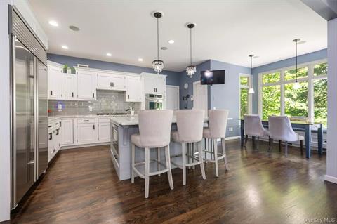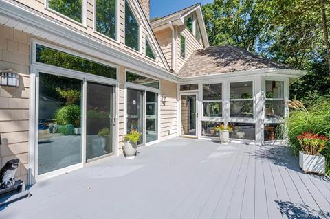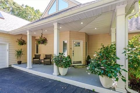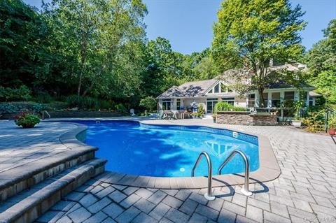 Experience North Shore Living at Its Finest. This stunning residence blends elegance, comfort, and resort-style amenities. This truly spectacular backyard is a private oasis with a heated pool, hot tub, custom pavers, adorned with fieldstone walls & professional landscaping, a built-in BBQ area, and a pool house equipped with a full kitchen, bathroom, CAC, heat, and covered patio. Stone steps lead to a parklike side yard with an additional garage beneath the pool house. Inside, the grand foyer opens to a living room with soaring ceilings, a dramatic two-sided quartzite fireplace, and walls of glass with transom windows framing backyard views. The primary suite offers deck access, two walk-in closets, and a spa-inspired bath with Jacuzzi tub, oversized shower, dual sinks, and radiant heat. The gourmet kitchen features a quartzite island, Sub-Zero refrigerator, Thermador oven, wine/beverage cooler, walk-in pantry, and breakfast nook. Off the formal dining room is a sun-filled four-season room that leads directly to the backyard deck, perfect for entertaining or relaxing with a view of the pool and gardens. The main level also includes a spacious laundry room, powder room with marble sink, and a two-and-a-half-car garage with direct access. Upstairs, a loft overlooks the living room, accompanied by oversized bedrooms, vaulted ceilings, custom built-ins, and sun-drenched adjoining rooms with skylights. The lower level offers a finished recreational area plus storage, utilities, and a wine room. Additional upgrades include: New: 50 year architectural roof, pool liner & heater, central vacuum, hot water heater, french drain system. Set in the desirable Shoreham-Wading River Central School District, this home offers the perfect balance of small-town charm, natural beauty, and modern convenience located just minutes from Long Island Sound beaches and perfectly situated at the gateway to North Fork wineries. Enjoy the Wildwood State Park nearby with hiking, biking, camping, and proximity to golf courses, and local farms. Wading River has it all, making this home not just a residence, but a lifestyle!