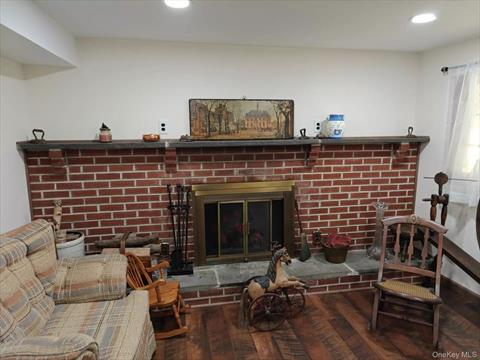 Spacious 4-bedroom Hi Ranch featuring master bedroom with bath and walk-in closet, 3 additional bedrooms upstairs.All oak hardwood floors on upper level with carpeting in living and dining rooms. Kitchen opens to outdoor deck with stairs to patio below. Recently updated downstairs features full wall fireplace with stone mantle, overhead lighting and Pergo flooring. Downstairs also features a large office room with full wall sliding door shelving and closet. House sits on park-like .54 acres complete with apple , walnut, large Hollys, and other specimen trees. Nicely landscaped with large mature wooded area, tall hedges and fencing for privacy. Includes full yard IGS and Central AC. Laundry Room, two additional storage closets and crawl space on second floor. Two car garage with built-in workbench and shelving. Low Taxes. Hauppauge School District, minutes from LIE and LIRR.
