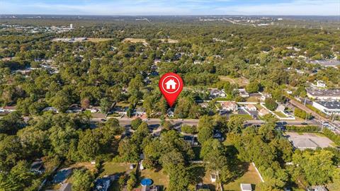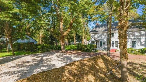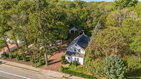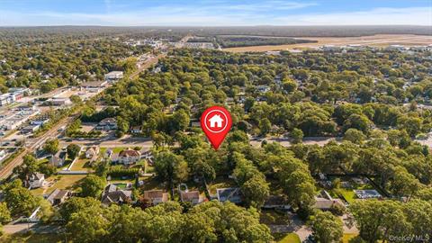 Steeped in local history, this charming 5-bedroom residence—once an Inn and family farm—dates back to 1850 and was originally part of a six-acre estate. Today, it proudly rests on a rare and expansive .84-acre flat lot, offering endless opportunities for outdoor enjoyment, entertaining, or potential expansion. Recent clearing and landscaping have beautifully revealed the property’s natural character and park-like setting. Perfect for car enthusiasts, contractors, or multigenerational living (with proper permits), the grounds include an oversized detached two-car garage plus a spacious shed, formerly a chicken coop, ready to be restored or creatively repurposed. Inside, the flexible floor plan blends historic charm with functional living. The main level features a bedroom and full bath, ideal for guests or a possible formal dining room conversion. An enclosed sun porch adds inviting warmth—flooded with natural light and offering versatile space for a cozy sitting area or additional storage. Upstairs, you’ll find four generous bedrooms, including one with a walk-in cedar closet and another well-suited as a library, home office, or den. A second full bath has been tastefully updated with a whirlpool tub and separate shower. The secondary staircase adds both charm and convenience, providing easy access to the kitchen. Period details are thoughtfully preserved throughout, including original interior doors and hardware, intricate moldings, built-ins, and hardwood flooring, featuring wide-plank floors upstairs. Modern updates include gas heating and cooking, Andersen windows, vinyl siding, newer roof, 200-amp electric service, and in-ground sprinklers. Ideally located near I-495, shopping, train station, and MacArthur Airport, this property presents a rare opportunity to own a piece of Long Island’s history. Potential commercial use or subdivision (buyers to verify with the Town of Islip).
