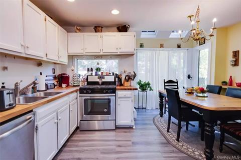 Charming 2-story, 2 bedroom, 2 bathroom home! In Miller Place School District. Unique layout featuring 2 staircases to upper level. Bright, updated kitchen with 2 skylights, relaxing Lr/Den; cozy sitting room. Tranquil backyard with 2 patios. Close to water. A great opportunity to own your own home.
