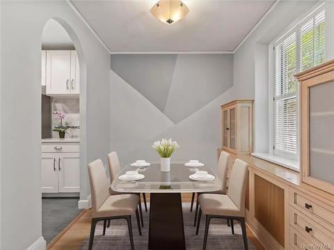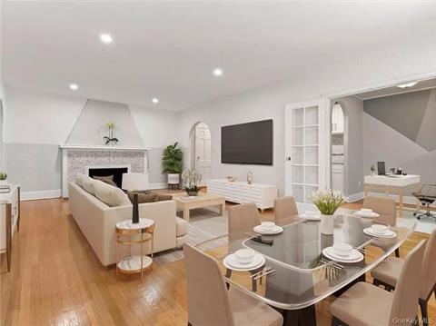 Beautiful, spacious, light filled, 4th floor, turnkey, pet friendly, Junior 4 gem in the elegant Bronxville Chateau. Renovated kitchen featuring Fisher & Paykel SS appliances, range/oven, refrigerator/freezer & double drawer dishwashers, quartz counters & stainless steel sink. High ceilings, hardwood floors, recessed lighting in the living room, windowed full bath, working WB fireplace, cedar closet, walk in bedroom closet, architectural archways, french doors & updated electric panel. A flexible floor plan allows the dining room to be used as a home office or nursery. South/West & Northern exposures. Spacious terrace for residents use. Dogs welcomed (weight restricted). 3 minute walk to Bronxville Village shops, restaurants & Metro North (26 minutes NYC), farmer’s market & park. Immediate street parking through Yonkers $25/month. Short wait list for assigned on site outdoor/garage parking. Non Smoking Elevator Bldg. MM w/out STAR. Not to be missed.