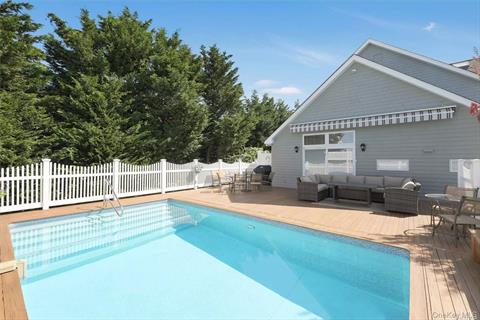 Experience the quintessential Hamptons lifestyle in this immaculate Remsenburg residence, ideally located south of South Country Road on a quiet waterfront street just moments from Moriches Bay. This serene summer retreat offers refined comfort, privacy, and natural beauty, the perfect escape for those seeking the essence of coastal living. Surrounded by lush landscaping, this beautifully maintained home invites you in with airy, sun-filled interiors and vaulted ceilings that enhance the open flow of its main living spaces. The chef’s eat-in kitchen is a showpiece, featuring abundant natural light and seamless access to the expansive deck ideal for al fresco dining or entertaining under the Hamptons sky. The first floor includes a welcoming guest bedroom, a full bath, and a bright and cozy living room. Upstairs, the master suite, where large windows frame picturesque views of Moriches Bay, offers a private bath with jacuzzi tub and walk-in shower. Two additional bedrooms and a generous bonus room provide flexibility for guests, a home office, or a creative retreat. Step outside to your private backyard oasis: a sun-drenched deck with an in-ground pool, surrounded by mature trees and lush greenery for ultimate seclusion. Whether lounging poolside, hosting summer gatherings, or enjoying quiet mornings, this home offers the ideal setting for relaxation and connection. Practical amenities, including a two-car garage with interior access and a double-wide driveway, ensure effortless convenience throughout your summer stay. Enjoy walking access to Moriches Bay, full Southampton Town Beach privileges, and proximity to Westhampton Beach Village, where you’ll find a myriad of boutiques, dining, and the newly revitalized Main Street, just minutes away. Available Summer 2026 - experience Hamptons living at its most serene and stylish! **Available Summer 2026: June ($25K), July ($30K), August-LD ($35K), MD-LD ($90K). Utilities not included.**