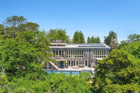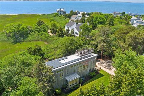Remsenburg 4 BR’s with Impossible Views At 32 Tuthill Lane you can live up above the canopy- with three levels and three south facing decks, your summer is guaranteed to have sunshine, fresh breezes and peaceful views of Moriches Bay. This LEEDS certified environmentally friendly home has 4 bedrooms, 2 and a half baths, a heated saltwater pool, firepit, grill, and fenced yard with kitchen herb garden. Renovated in 2009 to LEEDS green standards, 32 Tuthill Lane is clad in beautiful repurposed barnwood and has green features such as solar energy for electric power. A wall of windows bring in plenty of sun, but the whole house is efficiently cooled with central air. On the second level is a an open kitchen with elegant appliances by Liebherr, Miele, and Dacor. The kitchen opens to an expansive living room with a two sided gas fireplace, half bath and adjacent office. The grand primary suite with king bed and water views features a bath with a soaking tub, shower, and double vanity. On the first level are three bedrooms with a shared bath with shower, a den with TV and another living space with a bar and pool table. On the lower deck is an outdoor shower, seating area with espaliered trees and gravel firepit area. The second floor deck, located just off the kitchen has plenty of seating, a dining table and a grill. Ascend to the third deck- a spectacular perch for sunsets and bird watching overlooking Moriches Bay. At the end of the lane is a sandy right of way to walk along the shore or launch a kayak or paddleboard. Offered for the full summer season, 32 Tuthill Lane is only 4 miles from the shops and restaurants of Westhampton Beach and an easy 90 minute commute from Manhattan. Tenants can purchase beach passes to both Southampton Town Beaches and Westhampton Beach Village beaches (Rogers and Lashley). Available June 20k, (MD-6/26) July and august are rented. Would also consider off season and year round. Rental Registration # Pending, Additional information: Green Features:Green Certified
