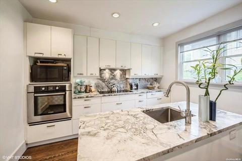 Greenport village 5 bedrooms, 2 baths with sweeping Water Views, adjacent to 6th St bay beach & park. Architect-designed & decorated interiors, chef’s kitchen, 2nd floor sundeck and large yard with garden & outdoor dining area. Huge water-facing sun porch with wall of windows looking out on the bay. Short distance to farmers markets, wineries, shopping, LIRR & Jitney. June $14, 000; July $20, 000, September $16, 000 RP# 22-298