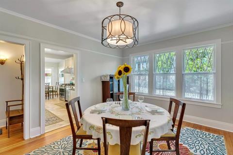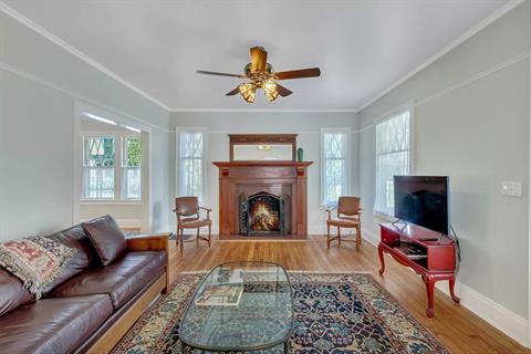 Authentic Craftsman was built in 1918. Featuring covered front porch, 2 bedrooms, full bath, living room with wood burning fireplace, eat-in kitchen, formal dining room, office/day bed, powder room/laundry, glass door to rear patio, private off-street parking. Starting Oct $4, 200/mo. year-round. Permit# 1048