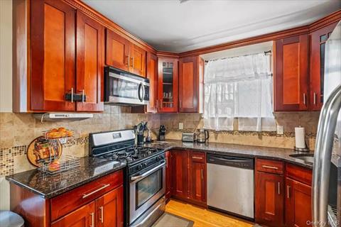 Freshly Painted, Refinished hardwood floors and Newer windows highlight this immaculate 2 family with finished walk out basement. Each unit has a Primary bedroom & primary full bathroom, 2 additional bedrooms, living room, dining, kitchen with granite countertops and plenty of cabinetry, stainless steel appliances, and additional full bath. NATURAL GAS FOR COOKING AND HEATING. The vaulted ceilings and large, newer windows allows natural light to pour into this home. The width of the steps leading to the 2nd floor is 4feet 2inches, super wide for easy living, and moving of furniture also. PLEASE SEE THE PICTURES OF THE FLOOR PLANS ATTACHED FOR LAYOUT AND GENEROUS ROOM SIZES. A Detached garage and long driveway allows for convenient parking. The location is a prime, quiet midblock, that’s convenient to highways, shopping and an easy commute to NYC. Low taxes!