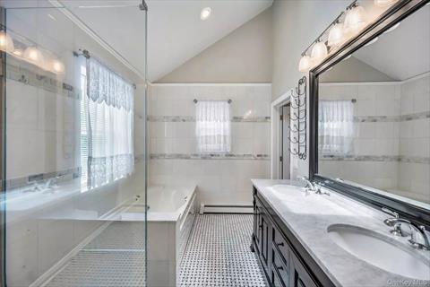Incredible opportunity to own a beautifully built colonial tucked midblock in a quiet cul-de-sac on just under a half-acre, where curb appeal meets resort-style living. From the expanded paver driveway and raised beds surrounding the property to the exotic, professionally landscaped exterior with cedar impression siding and a beautiful front porch perfect for relaxing, this home makes a statement. Step inside to an open floor plan with custom molding, recessed lighting, hardwood floors, and a show stopping kitchen updated in 2019 with granite counters, stainless steel appliances, double oven, wine fridge, butler’s pantry, and mudroom. The first floor also features a large laundry and mudroom with front-loading stainless steel washer and dryer, sink, cabinets, and an additional refrigerator, along with a gorgeous den, formal dining room with pond views, and custom built-ins. The interior is completed by a full finished basement with high ceilings and a temp-controlled oversized garage with epoxy flooring and upgraded systems. Upstairs, discover a great room or 5th bedroom, spacious bedrooms with vaulted and tray ceilings, and an enormous primary suite with coffered ceilings, walk-in closet, and a spa-like bath updated in 2019 with Greek and Italian marble, whirlpool tub, and custom glass shower, plus an additional bathroom updated in 2018 with Carrara marble and Kohler fixtures. The backyard is an entertainer’s dream with a heated in ground pool (liner updated 2021, pump updated 2020, filter updated 2019), expansive paver patio, gazebo with curtains, outdoor kitchen and bar, and a fully fenced pool area with wrought iron fencing that highlights the stunning double-sided cultured stone fireplace. Add in the koi pond with waterfall, cabana, shed, vegetable garden, fruit trees, and mature landscaping throughout, and you have a move-in ready masterpiece that combines luxury, comfort, and lifestyle.