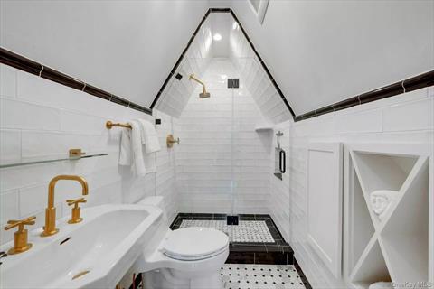 Discover the pinnacle of timeless elegance in this meticulously renovated, sun-drenched Tudor, where historic architectural charm seamlessly blends with contemporary sophistication. Perched above Kniffen Cove, this luxurious residence offers breathtaking views of Long Island Sound from a serene and coveted Rye enclave. Often recognized as one of Rye’s most iconic homes, it is a true signature property of unparalleled distinction. Inside, light-filled interiors showcase restored leaded-glass windows, wide-plank hardwood floors, and intricate millwork that exemplify classic craftsmanship. The sunken formal living room features soaring coffered ceilings, a marble-and-mahogany wood-burning fireplace, and custom built-ins, setting a tone of refined grandeur. The gracious formal dining room showcases the elegant wainscoting and crown-molding, opens through French doors to a sun-drenched sunroom/family room with vaulted ceilings, exposed wooden beams, and striking stone wall accents, completing a harmonious architectural statement.The chef’s kitchen extraordinaire is designed for grand entertaining, family dinners, and holiday gatherings. It features expansive Calacatta gold marble countertops, custom wood cabinetry with soft-close drawers, dual kitchens with two sinks and two dishwashers, a commercial-grade 6-burner Wolf range with griddle and custom hood, Sub-Zero refrigerator, beverage refrigerator, and high-end Wolf appliances throughout. Brushed brass hardware, custom lighting, MacKenzie-Childs pendant fixtures, and a built-in banquette breakfast area elevate this space to gourmet perfection. The luxurious primary suite offers a marble bath, his/hers walk-in shower, custom vanity and radiant heated floors for ultimate comfort. Three additional bedrooms feature custom closets and a full marble hall bathroom with tub. The completely finished third-floor retreat provides a light-filled yoga/meditation studio, private home office, or creative space, with abundant storage. The lower level includes a spacious recreation room centered by a dramatic stone wood-burning fireplace, a full bathroom, and thoughtfully designed built-in storage cubbies leading seamlessly to the garage. Outdoors, professionally landscaped grounds feature a newly appointed front walk, flagstone terrace overlooking lush gardens, and a vegetable garden that has provided years of fresh harvests. Minutes to Milton Elementary School, close to beach, premier beach and tennis clubs. State-of-the-art upgrades really enhance the lifestyle of this luxurious home. With its rare combination of historic charm, modern comfort, abundant natural light, and premier coastal setting, this residence is more than a home — it is a piece of Rye’s history and one of the community’s most beloved signature properties.