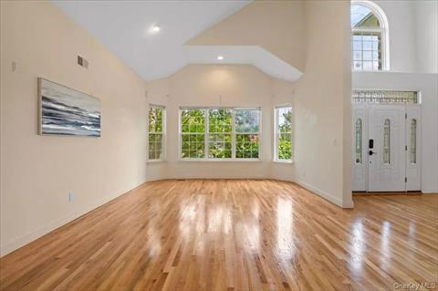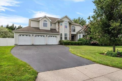 Welcome to Island Estates, where this impressive Colonial features 5 bedrooms and spacious living areas, complete with soaring ceilings and a striking staircase. Hardwood flooring flows throughout, leading to an expansive eat-in kitchen complete with a butler’s pantry. The family room includes a fireplace, while the primary suite showcases tray ceilings, generous walk-in closets, double door entry, a spa-like bath with jacuzzi, and a dedicated vanity space. The lower level boasts 10-foot ceilings and a walk-out entry, providing versatility for future use, while additional amenities include a 3-car garage, central air conditioning, gas heating, and a security system. The grounds are professionally maintained, creating a welcoming setting in this desirable neighborhood.