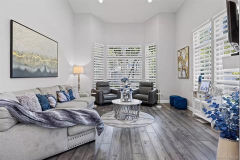 Impeccably Maintained End Unit Townhome in The Colony!From the moment you enter this stunning end unit townhome, you’re greeted by soaring cathedral ceilings, an open layout, and oversized windows that fill the home with natural light. Every detail has been thoughtfully designed, featuring a striking stone gas fireplace, a custom staircase with elegant iron railings, and a designer kitchen with abundant counter space—perfect for cooking and entertaining. The home boasts a brand-new primary bathroom, a brand-new half bath, custom blinds, and a spectacular chandelier. Gorgeous hardwood and tile flooring flow throughout. The finished basement offers a home gym, additional living space, and extensive storage. Step outside to enjoy a private oversized backyard, ideal for hosting family and friends. For added peace of mind, this home includes all new central AC units, heating, and hot water systems. Offered fully turn-key, with furniture purchase available as an option. The Colony provides resort-style living with 24-hour gated security and exceptional amenities, including three pools, a state-of-the-art fitness center, racquetball, pickleball, and tennis courts, plus a clubhouse with a bar room, card room, and grand ballroom. Move right in and experience the perfect blend of luxury, comfort, and convenience.