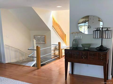 Village Location with Waterview! Beautiful Modern 4 Bedroom, 3 Bath Home located within the Village of Port Jefferson, offers all Village amenities including private Beaches, resident Parking and P J Country Club Golf and Tennis. The Spacious Open Floor Plan feels calm and relaxing with hardwood floors, contemporary Fireplace and a bright, clean European aesthetic. Kitchen has charming dining area, updated appliances and separate alcove as coffee bar or butler’s pantry. Outdoor decking and balcony enjoy Harbor Views and serene Sunsets. Sumptuous Primary Suite with Spa Bath has private balcony to enjoy all. Main floor Bedroom and Full Bath provide additional living option. Handsomely finished lower level has outside entrance and provides additional living/ office space.Great In Village Living - Close to all - Just minutes to Stony Brook University! This is a must see Home!