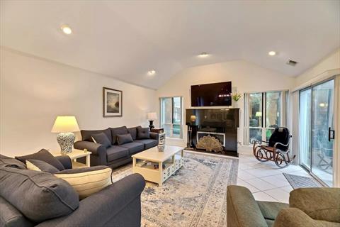 Welcome to The Waterways! This rare Admiral style unit boasts open floor plan living with vaulted ceiling living/dining room with dual patios, gas fireplace, Two walk in closets and oversized garage. Basic cable and Internet INCLUDED in HOA Fees! Guard Gated Community highlights: private marina, heated pool, tennis, pickleball, gym newly renovated (2025) clubhouse, bocce, activities, clubs, trips & more!