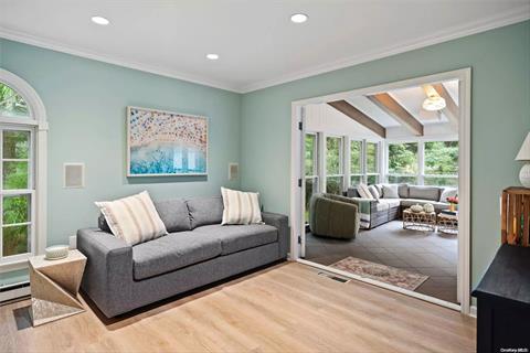 Introducing a beautifully updated 3 bed, 2 bath home, quietly nestled on .45 acres. This residence features a spacious living room perfect for relaxation, a modern, well-equipped kitchen, a cozy den/bonus room for added versatility, and brand new baths. The home also includes a beautiful sunroom that opens up to the backyard, where you’ll find spacious patio areas, pool with a brand-new liner, hot tub, an outdoor shower, and a serene sauna-ideal for enjoying the outdoors year-round. A partly finished basement and large shed offers additional space for storage or recreational use. Ideally located just minutes from Sag Harbor, Southampton, and Bridgehampton, this home provides convenient access to world-class ocean and bay beaches, as well as renowned local shopping and dining. A perfect Hamptons retreat combining comfort, privacy, and prime location. Available Aug-LD $30, 000.