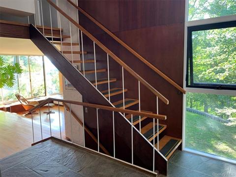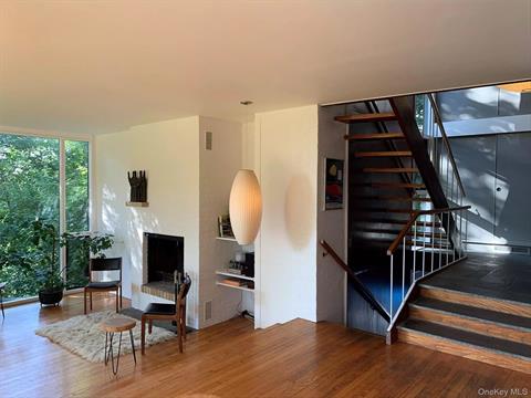 HUDSON RIVER VIEWS MID-CENTURY MODERN GEM PRIVATE WOODED ACRE Less than an hour from Manhattan, this stunning restored mid-century modern glass house sits on 1 private acre with sweeping Hudson River and mountain views. Floor-to-ceiling windows in nearly every room connect light-filled spaces to nature. Features include wood burning fireplace, floating staircase, iconic fixtures, warm wood paneling, and bold architectural details. Fully renovated luxury bathrooms with heated floors, terrazzo, marble, and modern fixtures. Updated kitchen, covered carport, multiple outdoor living areas including balcony deck and patio. Basement with laundry (new Miele washer/dryer), storage, and natural light. Backup generator. Perched along the Old Croton Aqueduct Trail with expansive southern exposure, this treetop sanctuary is surrounded by scenic trails and biking paths. Minutes to Croton Gorge Dam and Teatown Preserve, and just 6 minutes to Croton-Harmon Metro-North (express to Grand Central). Tax records state 1595 square feet. Appraisal shows 1720 sq ft.