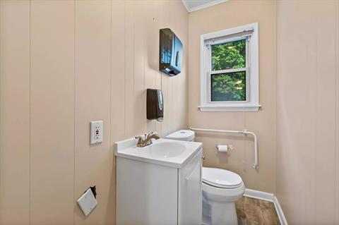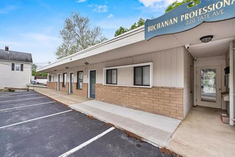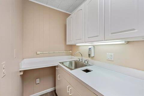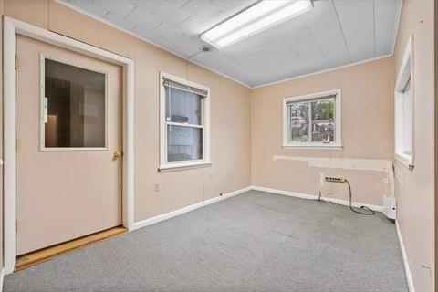 This commercial rental offers a functional layout including two private offices or client rooms, a designated waiting area, and a front reception desk. The unit is further equipped with a kitchenette and one bathroom. Tenants will appreciate the abundance of off-street parking and the ease of access. This adaptable space can accommodate various business types, including professional offices (real estate, insurance, bank), personal services (beauty/barber), and potentially some retail or food-related ventures.