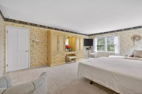 One of the most desirable addresses in Somers with a spectacular setting surrounded by estate properties both new and old. This classic center hall colonial home w/portico front entry has a superb floorplan with spacious rooms throughout, including a large office w/picture window, huge family room w/brick fireplace and French glass doors out to stone patio overlooking tranquil back yard. Conveniently located near the charming Village of Katonah with an array of shops, cafes and restaurants and equal distant to major shopping centers of Yorktown Heights. This is the first time on market since purchased by original owners. Awaiting new buyers to update & refresh this solid well built and lovingly cared for home. The possibilities are endless. Sizable primary bedroom with his & hers closets, dressing area, and a luxurious, step back into time, primary bathroom. One of 4 bedrooms has been converted to a full dressing room w/built in cabinets & display shelving for shoes & accessories, hanging wardrobe cabinets & overhead lighting. Many of the mechanicals have been recently replaced and/or upgraded including well water filtering system, ultraviolet light system, new Bosch hot water heater and (2) A/C compressors replace within past 5 years. Plenty of attic storage both above main house and separate access to garage attic. Central vacuum, irrigation sprinklers around perimeter of house, new refrigerator & wall ovens, Bosch diswasher & GE cooktop. Double steel door walk-out basement direct to yard with no steps. Never been walked on hardwood flooring exists under most carpeting. Cedar lined wardrobe closets in basement. Generator transfer switch for plug in portable generator.