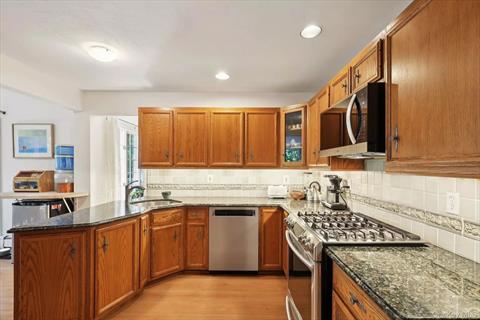 Lovely Light Filled Colonial with Views of the Private Setting! Front & Side Yard Includes Dogwood, Magnolia, Maple & Fig Trees. Pretty Sunroom Extension off the Eat-In-Kitchen Featuring Wall of Windows and Glass Doors to the Outdoor Deck. Sunroom is a Perfect Dining Area. Formal Dining Room & Family Room Also Offer Walls of Windows. Updated Stainless Steel Kitchen Appliances. New Microwave. Refrigerator, Dishwasher & Propane Gas Range - Within 5 Yrs. Andersen Windows & Hardwood Floors Throughout. Most of Roof 2025. Weil McLean Boiler and New Above Ground Oil Tank. Outdoor Shed. 1 Car Attached Garage w/Electric Door. Great Storage in Walk-In Attic. Very Private Setting w/Wrap Around Deck Surrounded by Nature!
