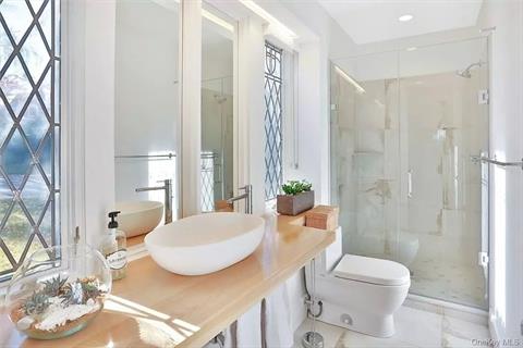 Stunningly renovated Stone Colonial in prestigious Fox Meadow neighborhood offers a rare blend of timeless character and modern sophistication. This 5-bedroom, 4.5-bath luxury home has been meticulously transformed to meet the highest standards of luxury living. Entering to this graceful foyer that leads to a sunlit living room, complete with a charming stone fireplace. The heart of the home is a custom European kitchen, a culinary masterpiece featuring a large center island, professional-grade appliances, a custom built-in beverage refrigerator, and a prep sink. The adjacent casual dining area perfect for entertaining and door opens directly to a private patio, making it an ideal setting for seamless indoor-outdoor entertaining. A convenient mudroom and access to the attached 2 car garage are also located on this level. An additional bedroom and a full bathroom complete the main floor. The second level is a private retreat. The primary suite is a true sanctuary with vaulted ceilings, custom his-and-her closets, and custom his-and-hers bathrooms offering spa-like European-style bathroom featuring a luxurious shower and a deep soaking tub. Three additional bedrooms each boast their own private en-suite bathrooms, while a sophisticated glass-enclosed home office/den provide flexible spaces for work or relaxation. The finished lower level is designed for ultimate leisure, offering a media/recreation room with surround sound. The home’s classic appeal is highlighted by its stone exterior, professionally landscaped garden, restored windows, and a classic slate roof. Located just minutes from the vibrant & charming Scarsdale Village and the train station, easy commute to NYC, shopping, parks, walking paths, etc. This home offers the perfect balance of serene residential living and urban accessibility. Experience the pinnacle of luxury and convenience! Great Opportunity to live in exclusive Fox Meadow area.