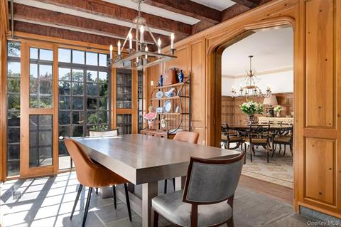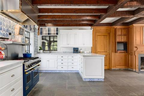 A RARE OPPORTUNITY to own a signature home in the center of the sought after Sterling Ridge neighborhood of Harrison, NY. Welcome home to 294 Sterling Road... a breathtaking, stately Tudor home with extraordinary architectural detail and exceptional craftsmanship that cannot be rivaled on 1.22 ac level, beautifully landscaped property with an abundance of magnificent plantings. Set back from Sterling Rd, this home sits prominently in the center of the property, with a rambling stone wall in front framing the large front lawn, with a gracious entrance thru stone pillars to the distinctive spacious Belgian block drive. Elegant Front Entry opens to larger Gallery Foyer with entry to a spectacular Great Room featuring Pecky Cypress wood cathedral ceiling & stunning centerpiece gas fireplace, a warm inviting paneled Library with wood-burning fireplace, an elegant Formal Dining Room, and large Chef’s Kitchen with Stainless Sub Zero, Viking range & hood, Delft decorative tiles, quartz counters, all enhanced by wood paneled Dining Area with gas fireplace & curved staircase to second floor. Sunlit Dramatic front staircase features stunning lead glass windows, acting as a focal point of the home as you ascend the staircase. Private luxurious Primary Suite overlooking the grounds with large Bedroom featuring tray ceiling, marble gas fireplace and elevated Library, includes a separate Dressing Room with multiple closets, High End Spa Bath with shower, soaking tub, double vanity, separate water closet features marble finishes, Rohl & Kohler fixtures, captures the grandeur of this home. Three additional spacious bedrooms with baths ensuite complete the second floor. Additional First Floor 5th BR/Home Office/Playroom with Full Bath adjacent to Kitchen Area. Fantastic Lower Level Bar Area & large Family Room/Playroom is the setting for entertainment for all ages! This home is like no other in the Sterling Ridge neighborhood... this is the home you drive by and always admire ... truly a one of a kind. It must be seen to fully appreciate every detail & architectural feature.