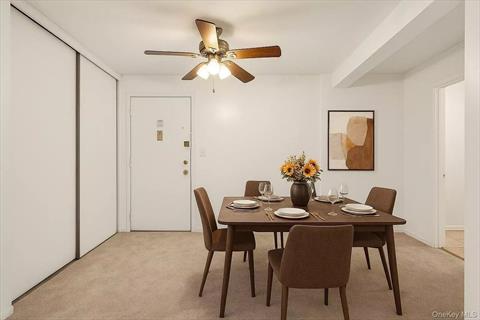 Spacious True One-Bedroom at Thornton Burns Owners Corp – Border of Forest Hills & Rego Park.Step into a welcoming entry foyer that easily doubles as a dining area, leading into a generously sized living room and kitchen. To the left, you’ll find a full bath and an oversized bedroom. Classic oak hardwood floors rest beneath the carpeting, with abundant closet space throughout.Maintenance is only $605.31/month. This affordable home is ready for your personal touch. Own for less than renting, just moments from trains and the shops, dining, and buzz of Austin Street.The building is well-kept, quiet, and financially solid. Amenities include an indoor parking garage (only $125/month, short waitlist), live-in super, laundry room, and pet-friendly policies. Maintenance covers all utilities except electric. Co-signers welcome. Fios & Spectrum internet options available.