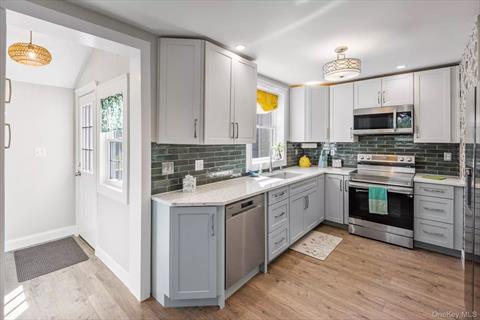 Charming 100% just renovated Home. A Cape with 6 Rooms, 3 Bedrooms, 2 Full Baths, A Full basement Unfinished for Storage, Utilitites & Laundry. There’s a 1 Car Garage, and driveway for your Cars. The Backyard is fenced and has a Paver Patio for BBQs and AlFresco Dining.