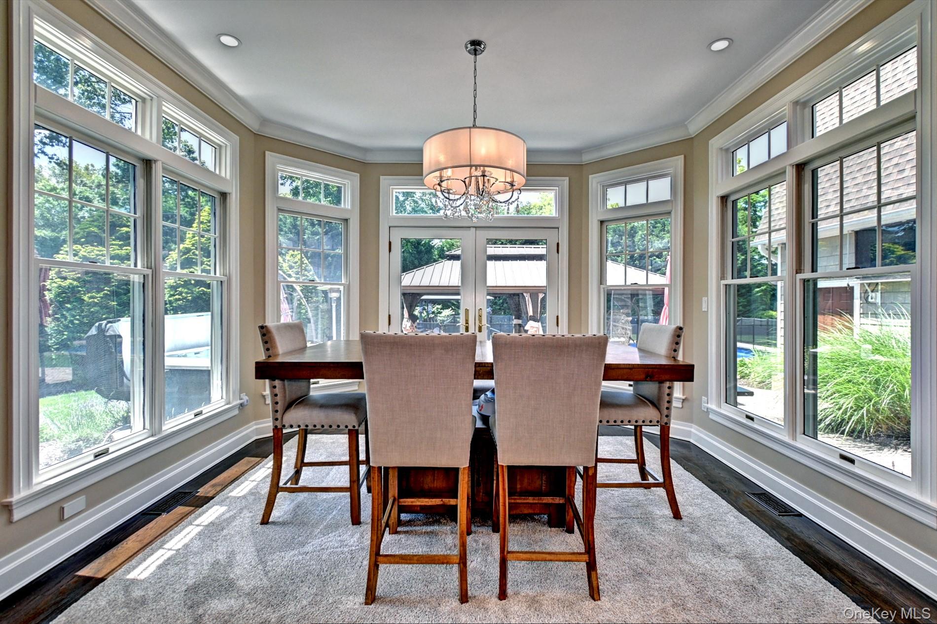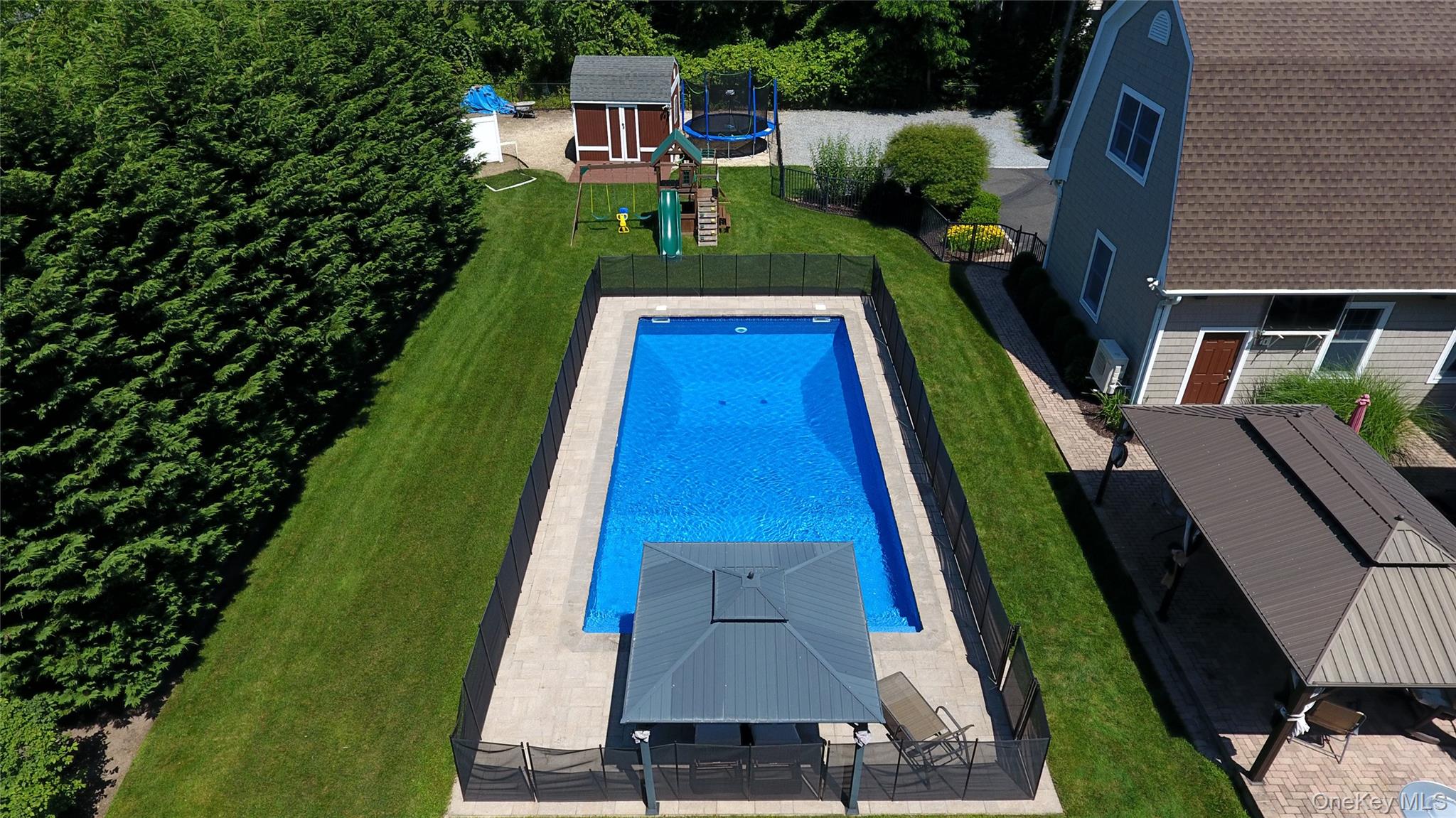 DEAL FELL THRU BACK ON MARKET!!! Welcome to an exceptionally maintained pristine home on the edge of the Hamptons where uncompromising craftmanship and serenity meets sophistication in East Moriches. Discover this lushly landscaped 4, 476 sq. ft home on .73 acres which exhumes a perfect blend of elegance and modern comfort. Step inside to discover a bright open floor plan accentuated by 12 foot ceilings, 60 high hats, central vacuum, and oak floors throughout the main level, The beautiful chef’s State of the Art Gourmet eat in kitchen with large glass sliding doors provides access to the inground pool, hot tub, and a spacious patio covered with a beautiful pergola. Viking appliances, Quartz countertops, and a large island invites family and friends to enjoy meals and quality time in comfort with the new Central Air system. The kitchen flows seamlessly into the family room complete with a cozy Soapstone fireplace. Additional highlights include a large dining room, an office/workout room, two half baths, access to the full basement, first floor bedroom suite providing flexibility for guests or multi-generational living with outside entrance. The home is equipped with a security system, backup generator, and a two-car attached garage. Step outside to a serene private entertainer’s dream boasting a large TV, speakers for your favorite music, with 2 pergolas, a large patio, inground pool with new liner, Loop-loc cover and Robot Vacuum, as well as a child safety fence around the pool and professional landscape lighting and irrigation system. This home combines luxury and tranquility in a picturesque setting, offering a unique opportunity to live in one of the most charming communities on Long Island. Located just 70 miles from NYC with close proximity to the Hamptons, this home is zoned for the highly regarded East Moriches Blue Ribbon schools, with your choice of high schools including Westhampton Beach. Don’t miss this rare opportunity to discover your next home!