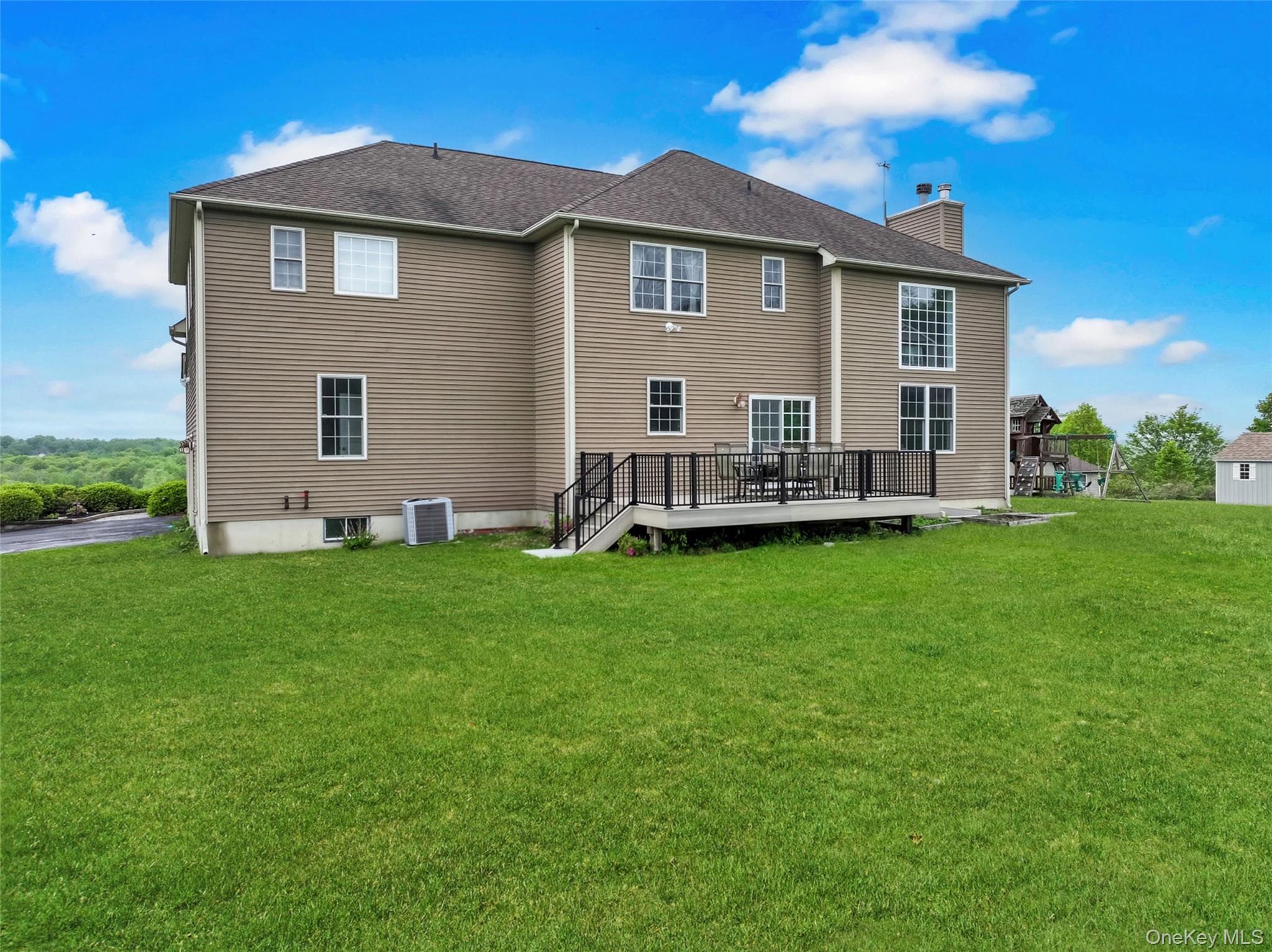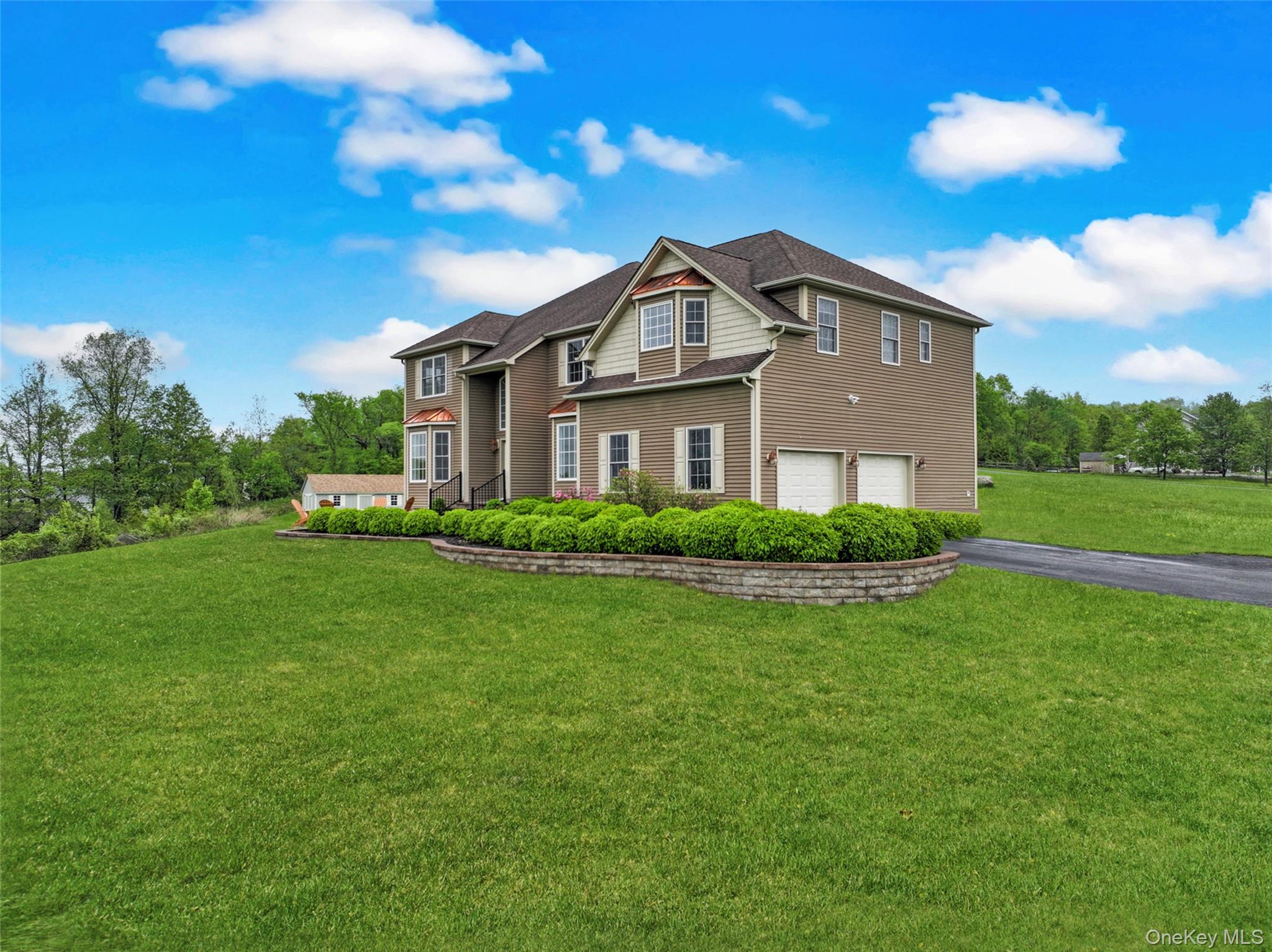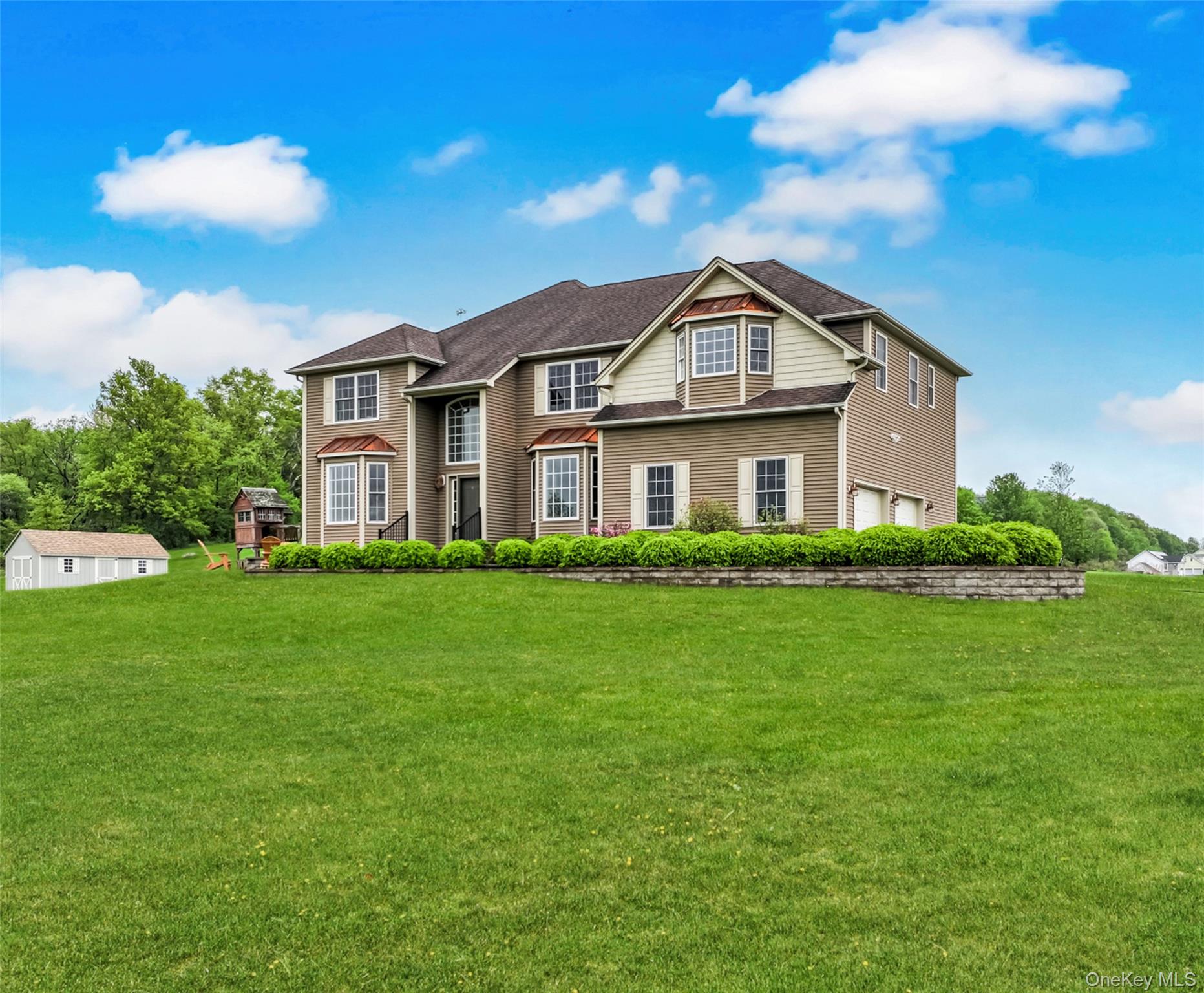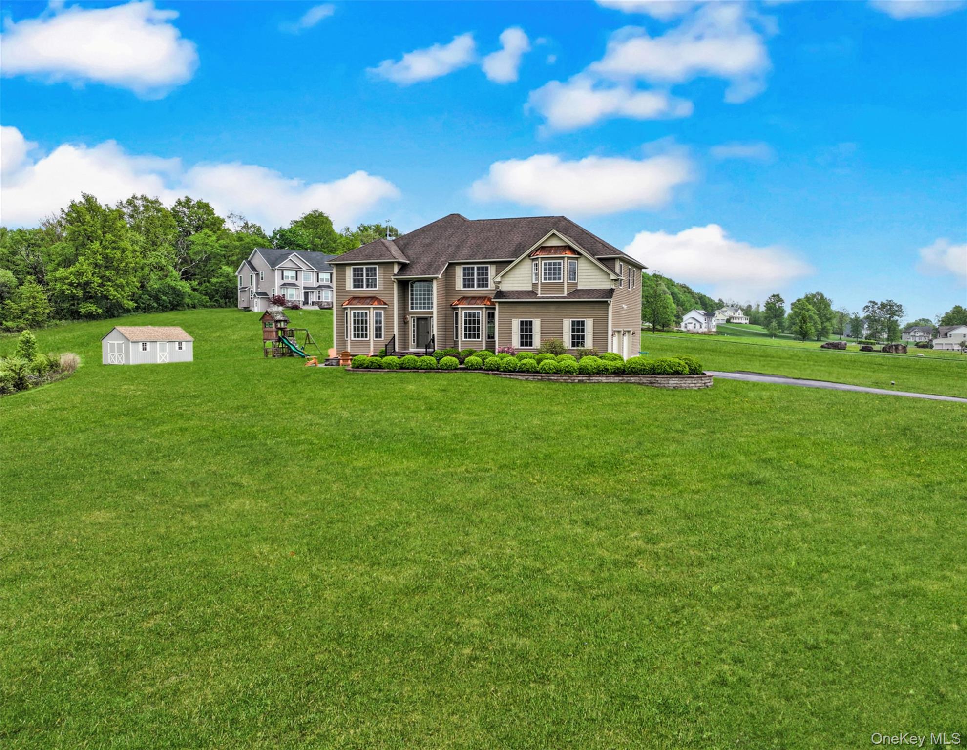 Nestled in one of New Windsor’s most sought-after neighborhoods and within the Washingtonville School District, this meticulously maintained Colonial offers the perfect blend of elegance and comfort in the Fox Hill Farm Development.Welcome to 54 Fox Hill Run—an exceptional home perched atop a hill, boasting breathtaking views and stunning sunsets. The grand foyer invites you into a formal living room and spacious dining area. A gourmet kitchen with granite countertops opens into a massive family room, featuring soaring ceilings and an impressive second-floor overlook.The expansive primary suite includes his-and-her closets, a walk-in closet, and a private bathroom complete with a jacuzzi tub. Three additional generously sized bedrooms and a full bath complete the upper level.A mudroom provides access to the laundry room, a full unfinished basement, and a two-car garage. Set on a beautifully landscaped 1.5-acre property, the home showcases incredible mountain views. The front patio features a gas fire pit, perfect for enjoying the scenic beauty of the Hudson Valley, while a private rear deck offers an ideal space for entertaining.