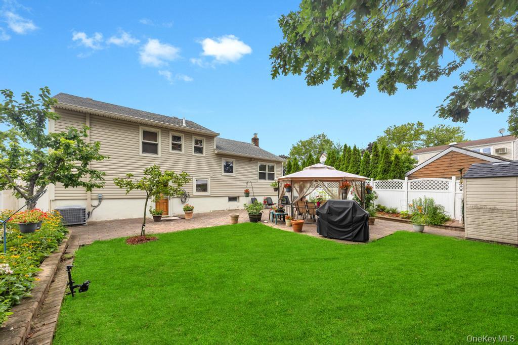 Beautifully Updated Split-Level Home in Prime Valley Stream Location!This meticulously maintained split-level home features 3 spacious bedrooms and 2.5 modern bathrooms. Situated on an oversized lot in a highly sought-after neighborhood, this home offers a perfect blend of style, comfort, and convenience.Enjoy cooking in the updated kitchen, complete with stainless steel appliances and elegant quartz countertops. The home features wood floors throughout, central air conditioning, and a cozy family room with French doors—ideal for relaxing or entertaining.Key updates and features include:• Gas boiler for efficient heating• Roof (15 years old) and siding (5 years old)• Pella custom windows with built-in blinds, plus Pella front and storm doors• Updated master bathroom• In-ground sprinkler system• Professionally landscaped grounds• Pavered driveway and patio• 1.5-car garage with ample storageWith its striking stone-accented front and exceptional curb appeal, this home is truly move-in ready