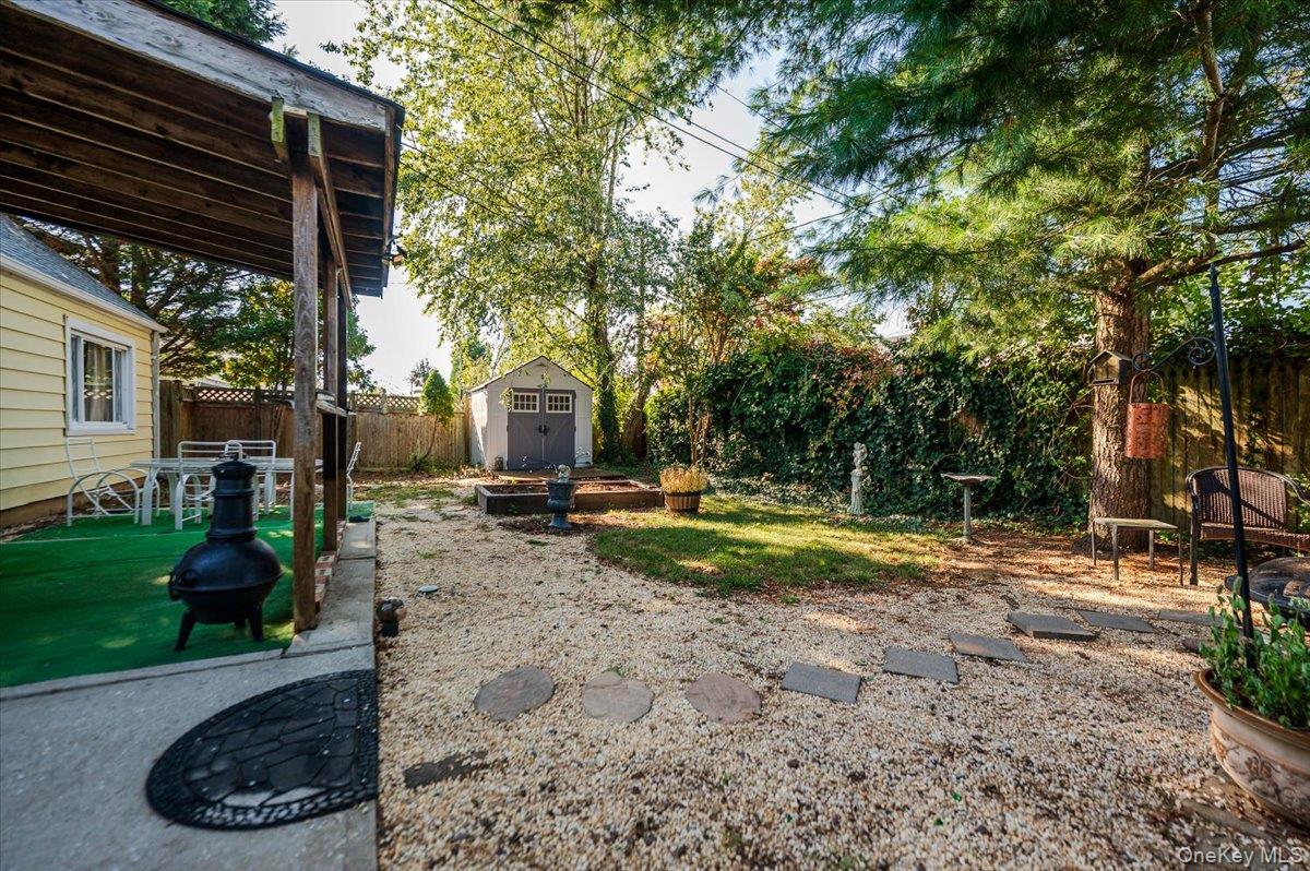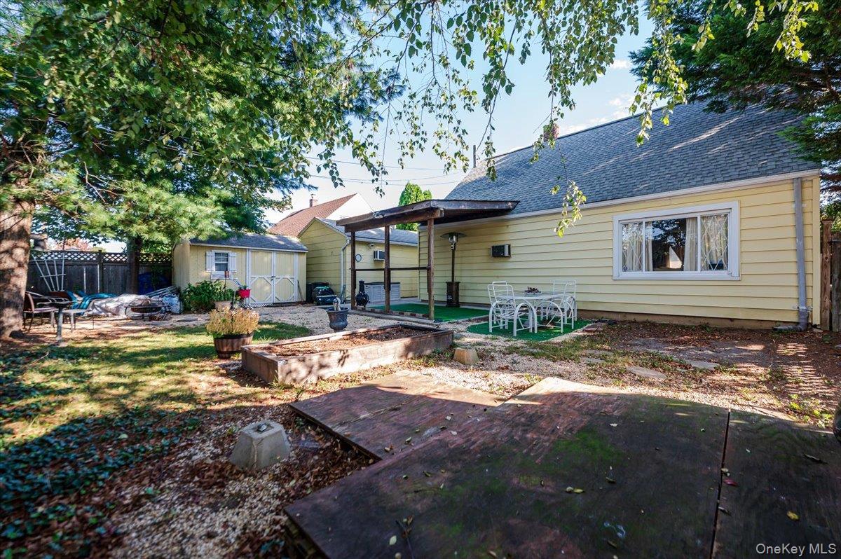 Welcome home to a must see charming 3-bedroom, 1-bath Cape-style home, white picket fence and all. In the desirable Levittown/Wantagh border. Nestled on a quiet, streetlamp-lit block with no through traffic, this home is perfect for seeking tranquility and convenience. Its prime location offers easy access to public transportation, major highways, and top-rated schools. The well maintained landscaped, fully fenced backyard with mature trees is ideal for BBQs, playtime, or relaxing evenings. A double-wide driveway leads to a detached insulated garage with a full-length attic, perfect for storage and hobbies. The kitchen features a Cuisinart oven, wall-mounted microwave, and new refrigerator and stovetop, complemented by a recently updated washer and dryer. Two large sheds provide ample storage, and a young roof ensures lasting durability. Enjoy year-round outdoor comfort with a new full-sized overhead propane heater. With modern upgrades and timeless appeal, 34 Curve Lane is a must-see opportunity. Schedule your showing today!