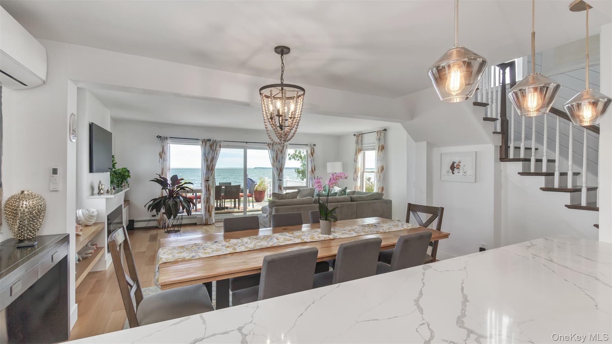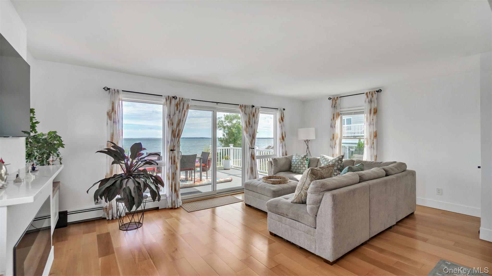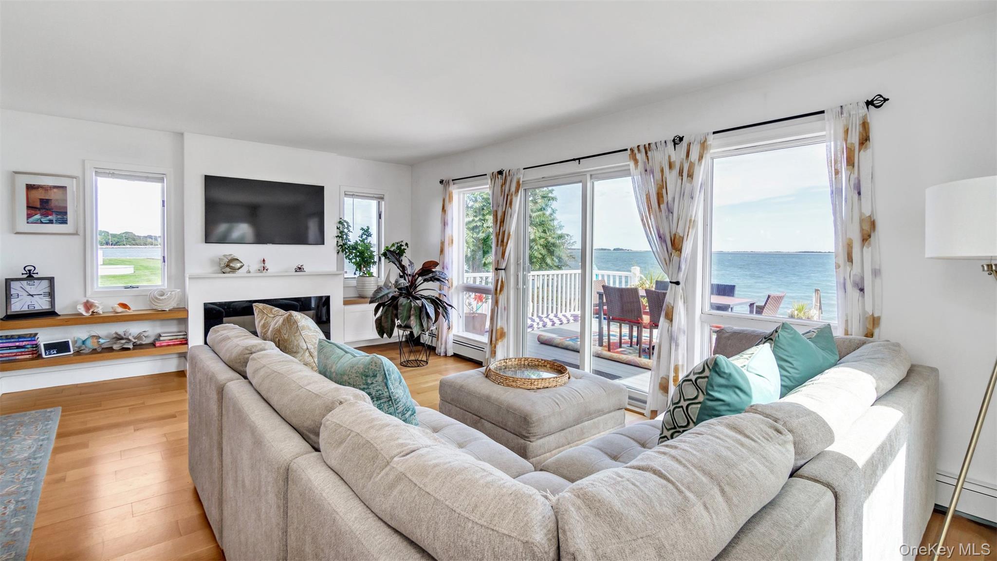 Welcome Home to 12960 Main Road, a Rare Bayfront, Beachfront Beauty! This (3) Bedroom, (3) Bath Residence is fully-updated, light and bright, and features a desirable open floor plan, with windows and sliders throughout, offering panoramic views of Gardiner’s Bay and Bug Light. As you enter the foyer leading to the stunning Chef’s Kitchen and Living Room, you will be captivated by the wall of windows and glass sliders showcasing the vast Blue Bay and Blue Sky, and you will be hooked! The Living Room also has an attractive electric fireplace, adding ambiance and warmth on those cooler days of the year. As they say in Real-Estate, Location, Location, Location! and this is one that can’t be beat, as you and your family and friends will feel so relaxed and rejuvenated in this serene coastal environment, that you won’t want to leave! There is a first floor Den with glass sliders, a balcony, and a waterview which may serve as a possible 4th Bedroom. There is also a Full Bath, Laundry area, Storage and Utility Room on the First Floor. Upstairs, you will find the Primary Suite, complete with sliders and a balcony, ideal for enjoying sunrises and sunsets, while viewing the plentiful boaters, kayakers and paddleboarders on the open water! One of the other two Guest Bedrooms upstairs features glass sliders with a balcony, as well as an adjacent Bonus Room, which may serve as a wonderful children’s playroom or office. The 3rd Full Bath is also located on the Second Floor. This Residence is made for entertaining, sporting a large trex deck off the Living Room and overlooking the Bay, where so many meals and festivities may be enjoyed, as well as offering private Beachfront, a mooring and bulkheading. Room for an inground, waterfront pool enhances the appeal of this property, as does its private gated entrance and finished shed with electric, which may serve as a future pool house. And, for additional activities and options, the Village of Greenport is only a short distance away, offering a vast array of Art Galleries, Museums, Fishing Charters, Golf, Boutique Shops, Breweries and Cideries, Waterfront Dining and other Entertainment Venues. Simply stated, here you may enjoy a lifestyle second-to-none, and one which you so richly deserve!