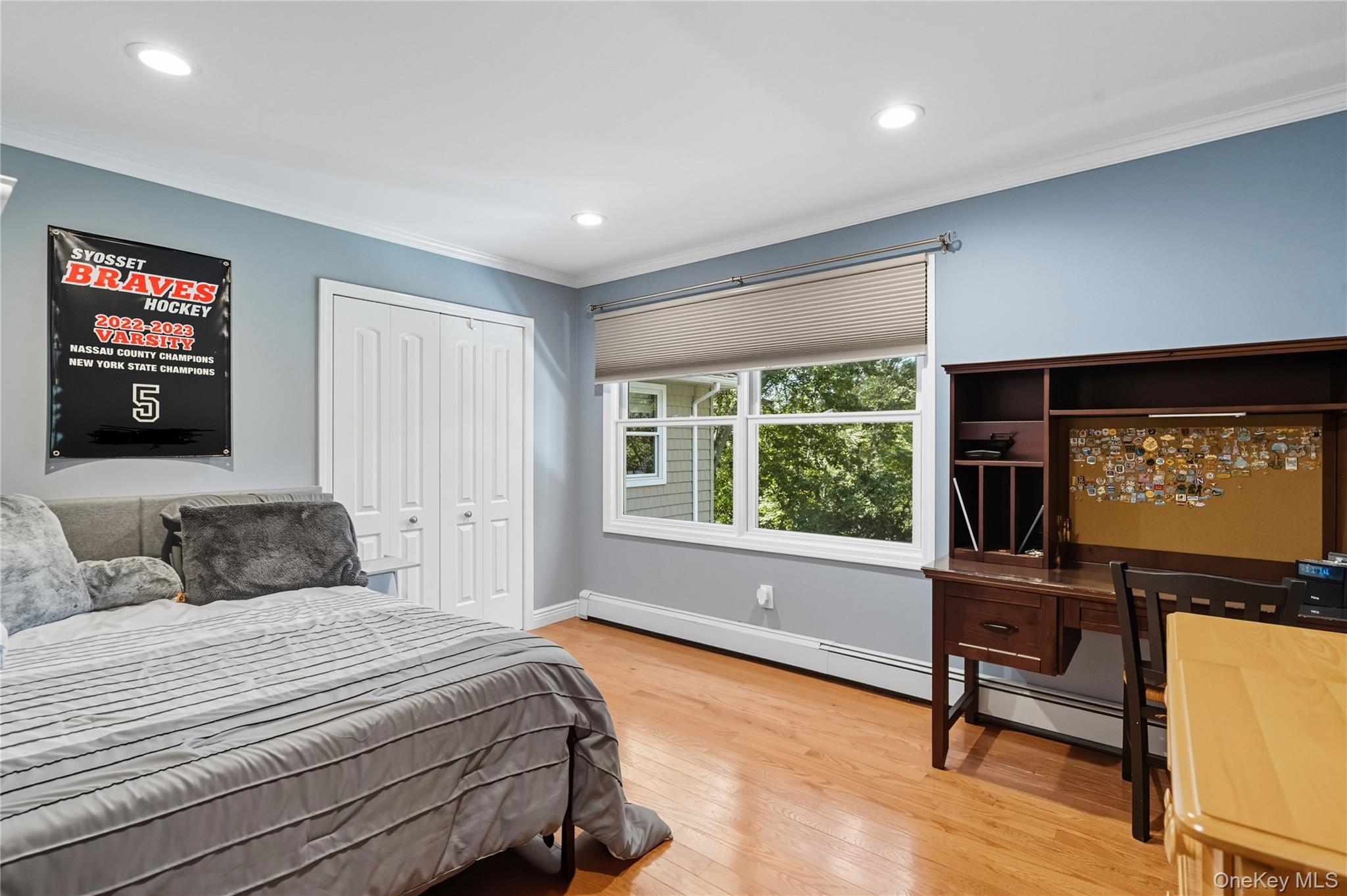Welcome! This 5 bedroom 4.5 bath beautifully crafted Colonial is tucked away on a peaceful 1.09 acre setting in one of Syosset’s most sought after neighborhoods. This home blends warmth, comfort, and quality craftsmanship throughout nearly 3, 800 square feet of living space. The layout is designed for everyday living and effortless entertaining. The living room boasts a tray ceiling, antique knotty pine floor that adds to the character and charm, as well as French doors which open to the bluestone rear deck, inviting natural light and easy indoor-outdoor flow.The heart of the home is the spacious kitchen showcasing dovetailed custom cabinetry, a large center island, professional high end appliances, and thoughtful design that makes cooking and gathering a pleasure. The oversized den with wood burning fireplace and custom built bookshelves offers a cozy retreat, while the formal dining area accommodates large gatherings with ease. There is also a 1st floor bedroom and1 full bath and a powder room on the main floor.Upstairs the primary en-suite is complete with a Juliet balcony overlooking the tranquil backyard. 3 large additional bedrooms and a convenient laundry room complete the second floor. Outside mature trees, lush lawn and a quiet yard create a sense of privacy and calm. Enjoy evenings on the deck or unwind in the hot tub.16 Pine offers a perfect blend of warmth, quality, and tranquility- a place where every detail has been considered!
