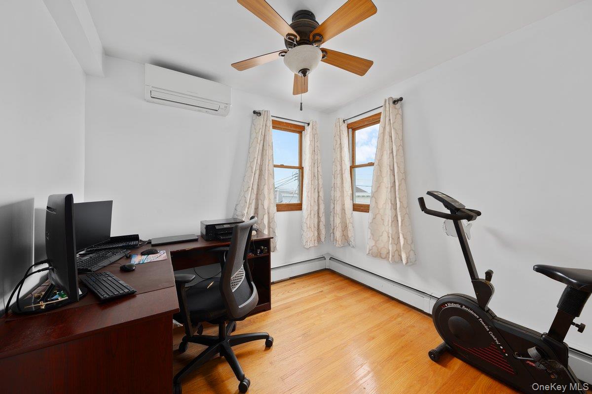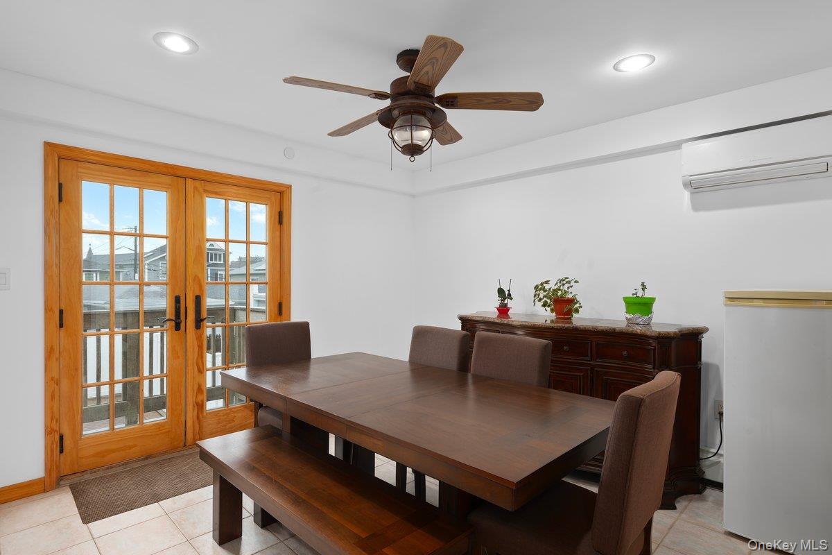 Move-In Ready Gem in Broad Channel. Welcome to this beautifully maintained and fully move-in ready raised home, perfectly located in Broad Channel. Step into a spacious living room featuring gleaming hardwood floors, skylights, recessed high hat lighting, a cozy wood-burning fireplace, ceiling fan, coat closet, and a split air conditioning unit for year-round comfort. The updated kitchen is a chef’s dream, equipped with Energy Star-rated stainless steel appliances, oak cabinetry, stunning quartz countertops, and a classic tiled floor. Adjacent is the bright dining area with tiled flooring, a ceiling fan, split A/C, and charming French doors that open to the backyard—perfect for indoor-outdoor living. The main floor also offers a convenient laundry room and a stylish half bath. Upstairs, you’ll find bedrooms with hardwood floors, split A/C units, and a full tiled en-suite bath off the primary bedroom. A dedicated home office space provides added flexibility for remote work or study.Additional highlights include: Fully finished attic with electric and a plywood floor—ideal for storage, Enclosed under-house area with cement flooring—perfect for a workshop, gym or extra storage, Sprinkler system throughout, Large fenced backyard with pavers and a spacious storage shed. This home offers comfort, space, and convenience in a desirable location close to city transit, nature, and the beach. Don’t miss your chance to own a turn-key property with everything you need—and more.Just 15 minutes from JFK Airport and steps from the train, express bus to Manhattan, shops, Rockaway Beach, and Gateway National Park.