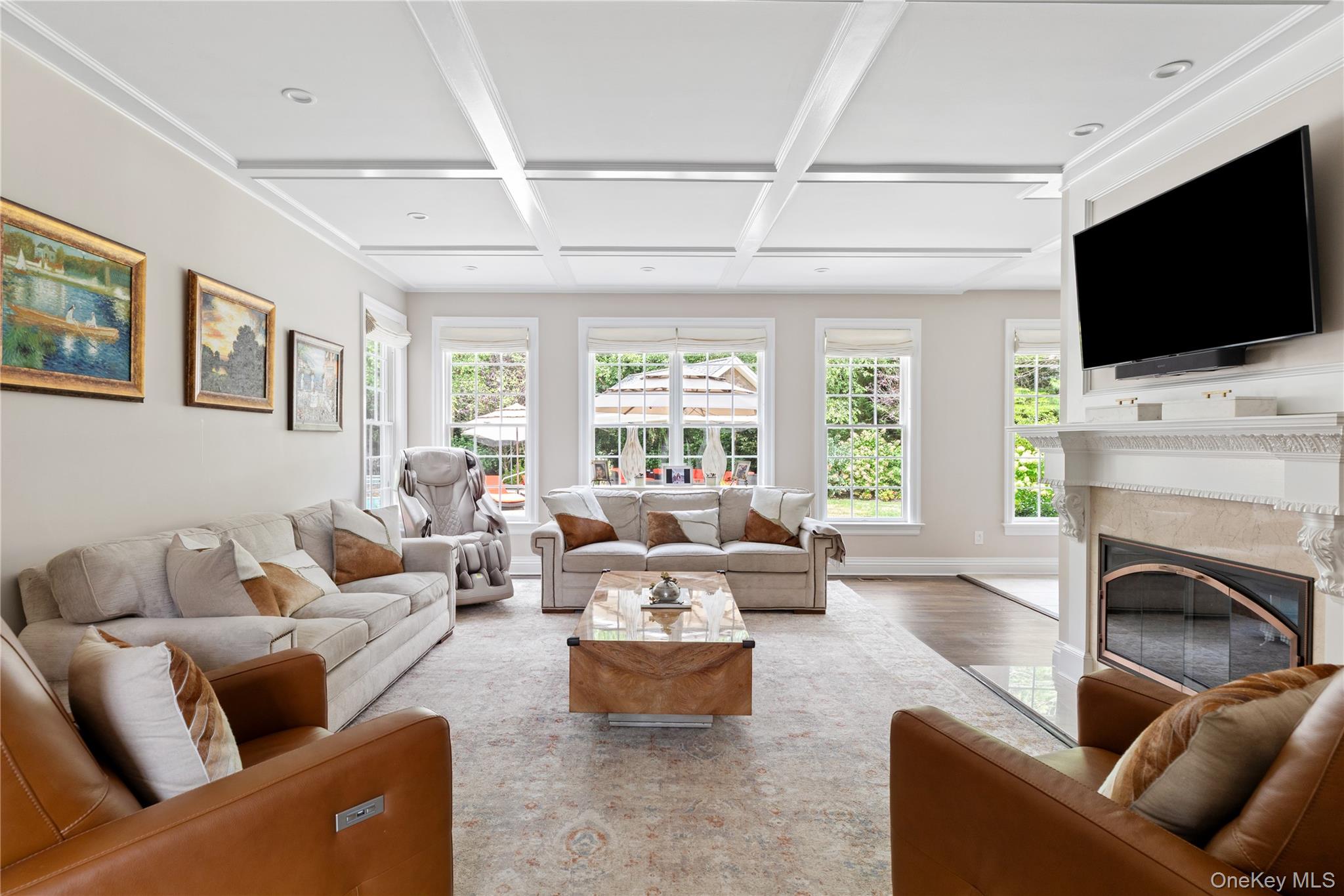 Exuding stately grandeur and refined sophistication, this exceptional 6-bedroom, 5.5-bath brick Postmodern estate is gracefully introduced by a circular driveway and nestled on a country club–caliber acre. Thoughtfully renovated in 2020, the home blends timeless architecture with modern luxury enhancements throughout. Experience the pinnacle of luxury living at The Legends - an exclusive, highly regarded gated neighborhood known for its elegant homes, manicured landscapes, and prime location, zoned within the sought-after Half Hollow Hills School District. The resort-style grounds are nothing short of extraordinary, showcasing a heated gunite saltwater pool and spa, enhanced by a dramatic built-in slide and a serene waterfall feature - creating the ultimate private retreat.Upon entering, a sweeping two-story foyer with a grand staircase sets a majestic tone, while rich architectural details and expansive living spaces define the home’s impeccable design. The gracious formal living room flows seamlessly into a secluded private office. At the heart of the home, the gourmet kitchen is a culinary showpiece, appointed with bespoke cabinetry, top-of-the-line appliances, and a sunlit breakfast area anchored by a striking dual-sided fireplace. This leads effortlessly into an open, sunlit family room with walls of windows overlooking the beautifully landscaped backyard. Additionally, there is a music room, a large mud area with built-in cubbies, and a dedicated laundry room.The lavish primary suite is a sanctuary unto itself, offering a sitting room, generous walk-in closet, and remodeled marble bathroom with a soaking tub. Upstairs, a distinctive secondary family room provides an inviting and versatile space for relaxation or recreation. The full, finished lower level elevates the home’s lifestyle amenities even further, featuring a custom-designed movie theater, a private fitness studio, and a wine closet.Meticulously maintained and curated with a designer’s eye, this remarkable residence is distinguished by a full brick facade, a full-house generator, an entertaining paver patio with a large pergola, and an attached three-car garage. Neighborhood highlights include a 24-hour guard-gated entry, community clubhouse, pool, and tennis courts.